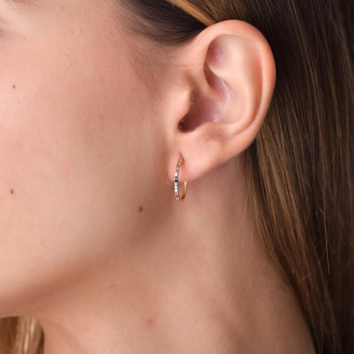 O pereche de cercei creole din aur galben cu zirconia ce reflectă stilul și personalitatea fiecărei purtătoare. Bijuteriile TEILOR sunt create pentru a celebra momentele tale speciale.