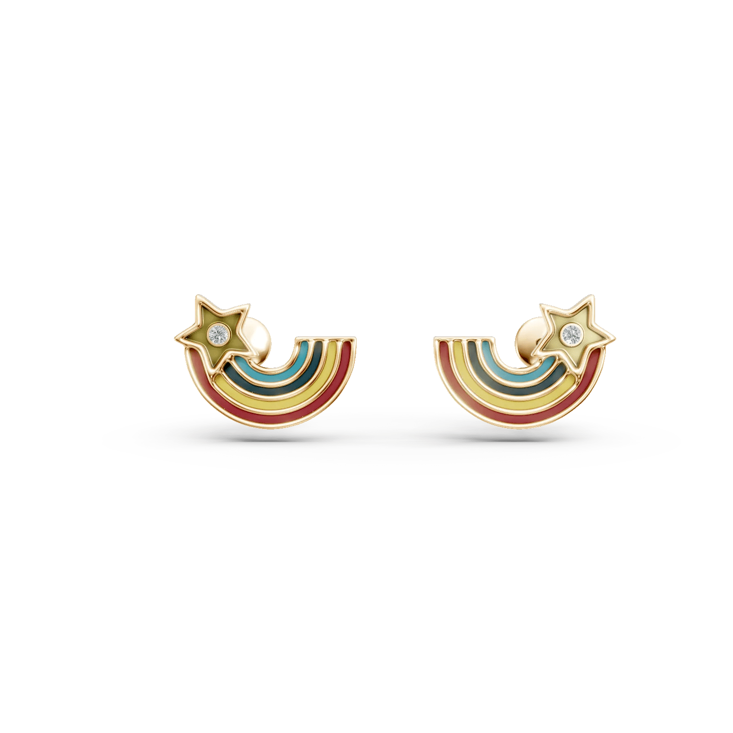 Oferă un strop de magie copilăriei cu acești cercei curcubeu din aur galben. Împodobiți cu diamante de 0.05ct și inserții multicolore, acești cercei aduc un plus de culoare și emoție la fiecare pas.