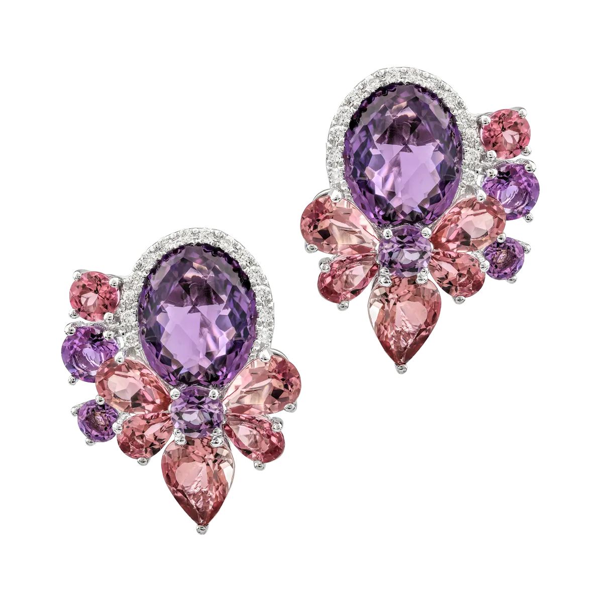 Descoperă frumusețea redefinită cu acești cercei din aur alb, încorporați cu pietre prețioase și semiprețioase de 11.2ct. Fațetele generoase creează o strălucire vibrantă care evidențiază bogăția culorilor, oferind un aspect modern și elegant. Designul atemporal se îmbină perfect cu diverse ținute, menținând un echilibru între volum și delicatețe. Aurul alb conferă o claritate rafinată, proiectând un luciu sofisticat, ideal pentru femeia care apreciază detaliile ce spun o poveste.