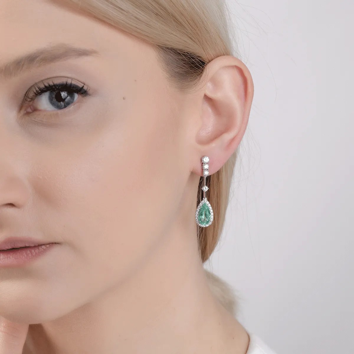 Cerceii din aur alb sunt definiți de strălucirea lor naturală, având smaralde de 3.51ct tăiate în formă de pară și diamante rotunde de 1.34ct. Verdele profund al smaraldelor este pus în valoare de tăietura unică, iar diamantele aduc un echilibru perfect de luminozitate. O alegere sofisticată pentru iubitorii de frumusețe autentică.