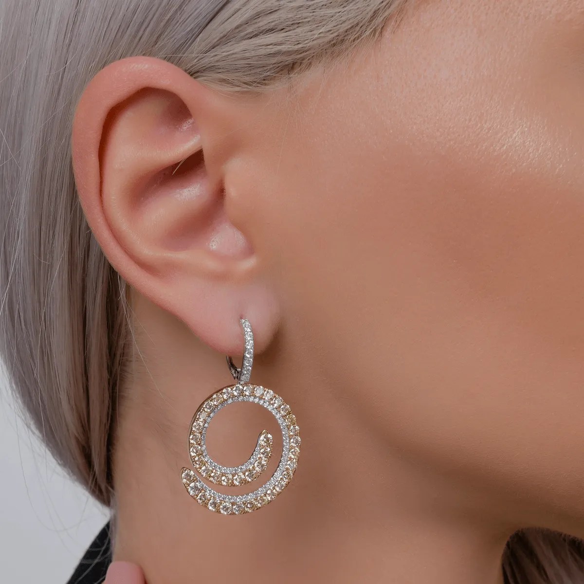 Descoperă bijuterii ce reflectă emoțiile și oferă prospețime prin nuanțe vibrante. Acești cercei din aur alb-galben, cu diamante galbene de 3.64ct și diamante transparente de 0.86ct, aduc un stil unic, perfect pentru a-ți exprima eleganța, indiferent de ținuta aleasă.