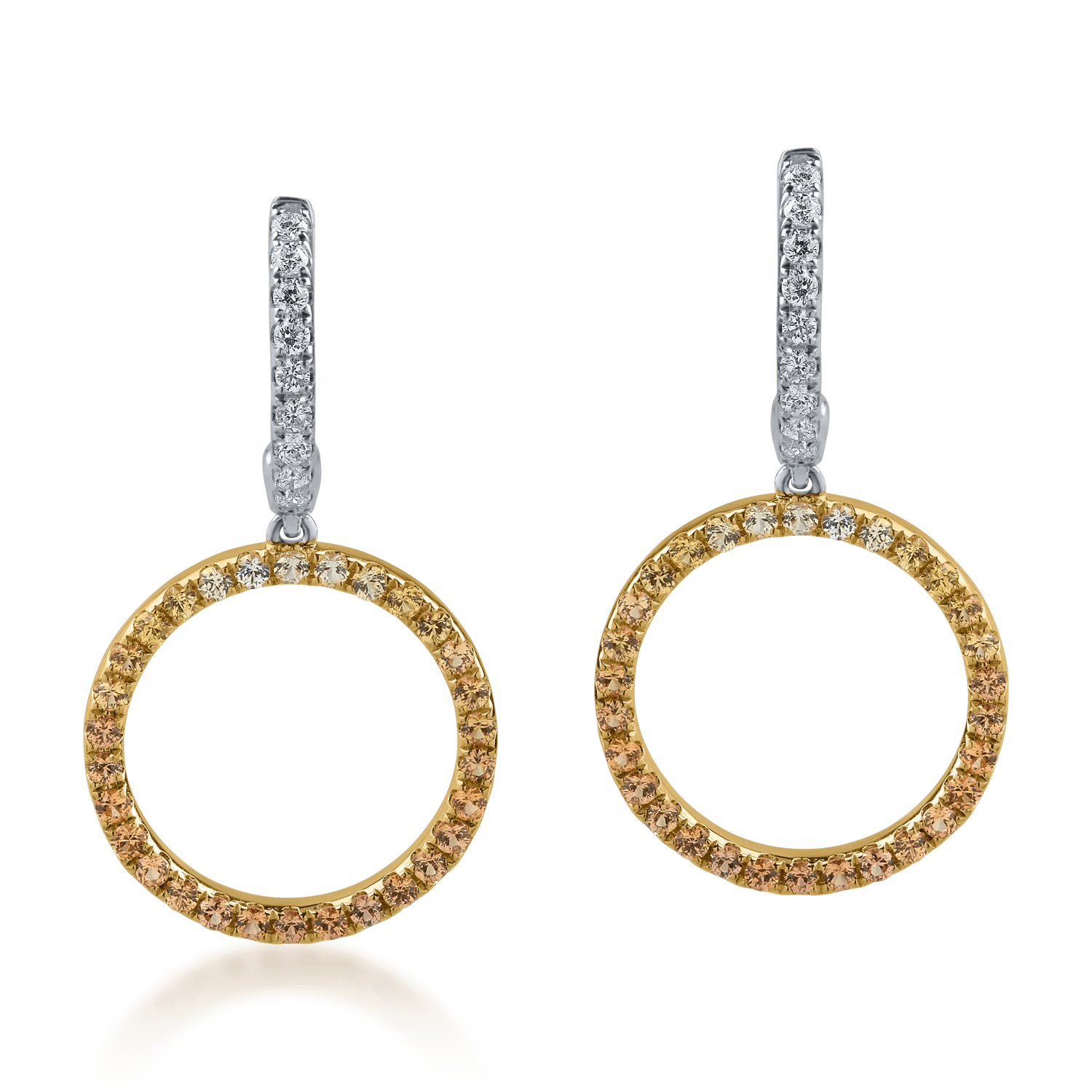 Îmbracă-te cu bijuteriile care îți oferă încredere. Cerceii din aur alb-galben cu safire galbene de 0.7ct și diamante de 0.2ct îți completează stilul personal, reflectând feminitatea în toate formele sale.