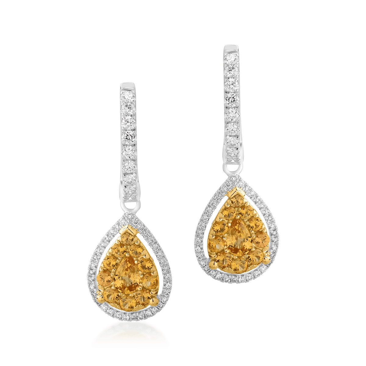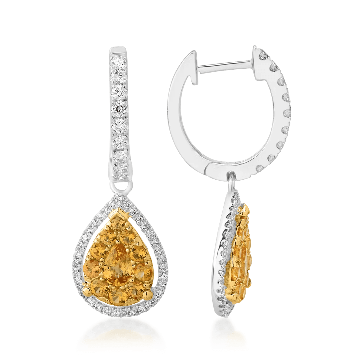 Cercei din aur alb-galben cu safire galbene de 0.94ct și diamante de 0.48ct