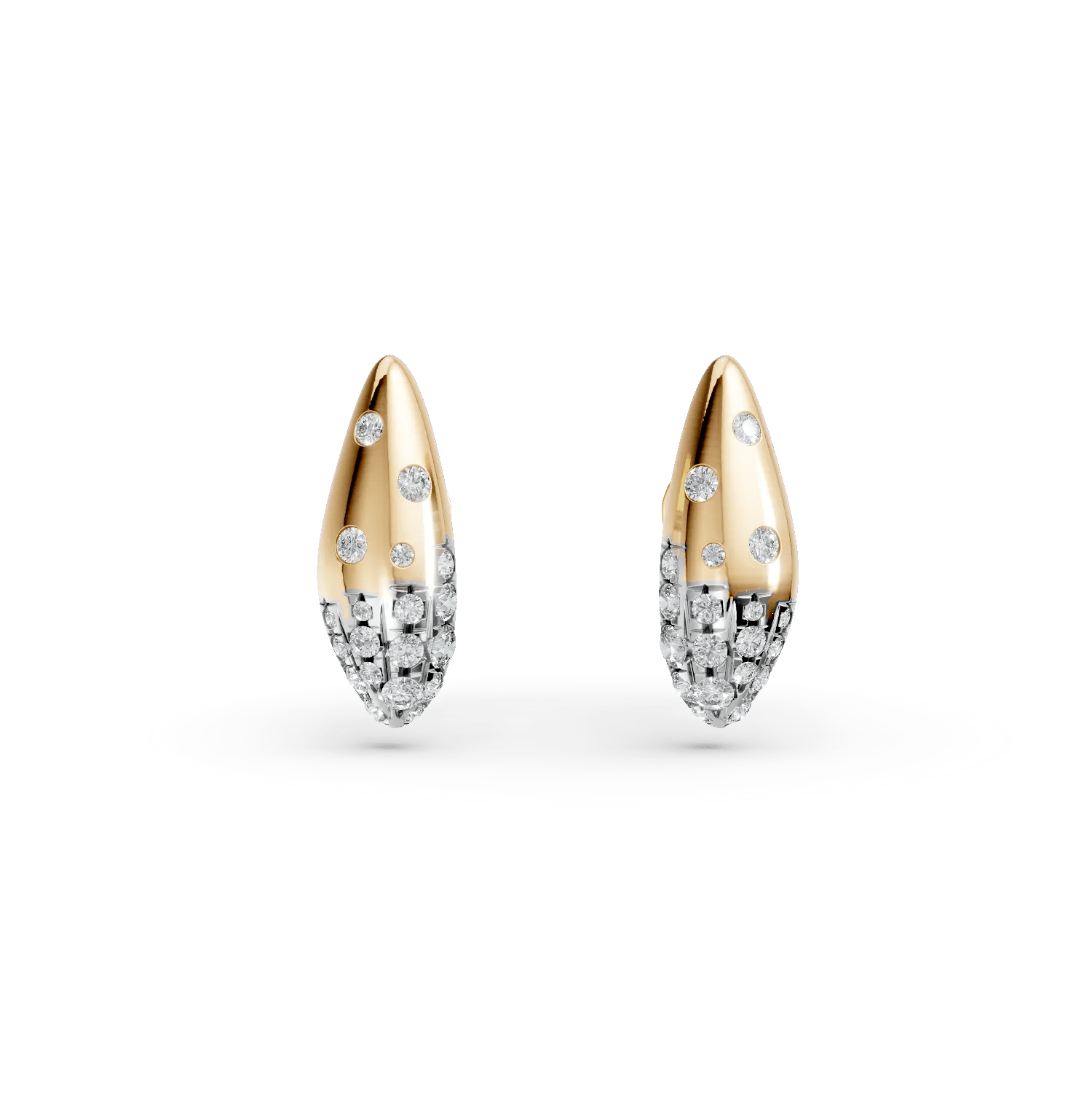 Cerceii din aur galben, împodobți cu diamante de 0.5ct, exemplifică eleganța și subtilitatea designului modern. Liniile delicate și alungite subliniază grația într-o formă pură.