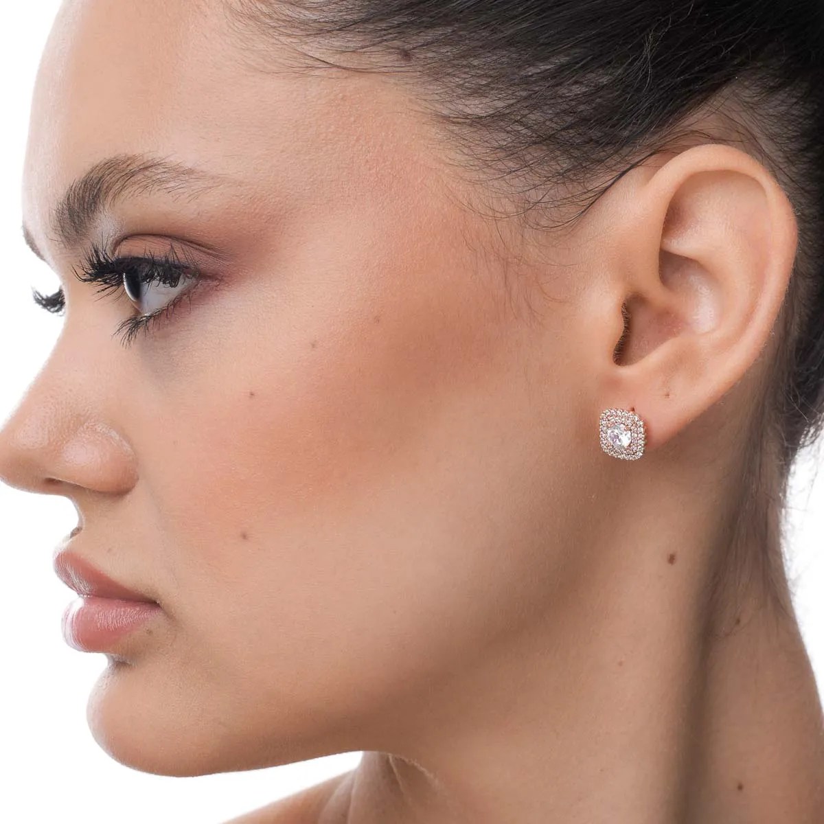 Descoperă farmecul atemporal al acestor cercei geometrici realizați din aur roz și înfrumusețați cu zirconii. Eleganța subtilă și echilibrul dintre modern și clasic îi transformă într-o piesă centrală pentru orice ținută.