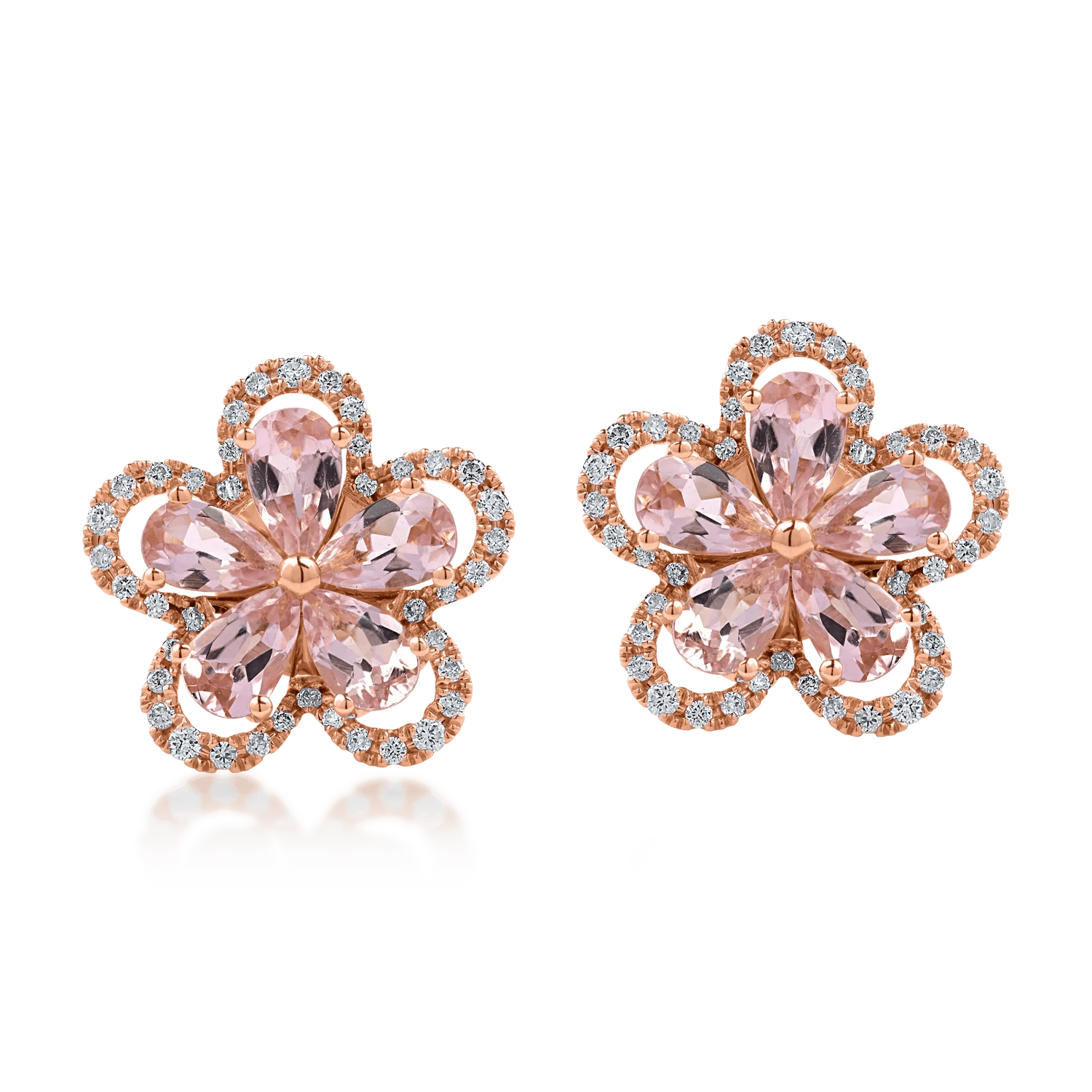 Acești cercei floare din aur roz, cu turmaline roz pear de 1.9ct, sunt remarcabili prin nuanța lor caldă și taietura alungită ce amplifică reflexiile. Diamantele de 0.31ct adaugă o strălucire subtilă, conferind designului un rafinament feminin. Versatilitatea lor permite purtarea în două moduri diferite, adaptându-se cu ușurință oricărui stil.