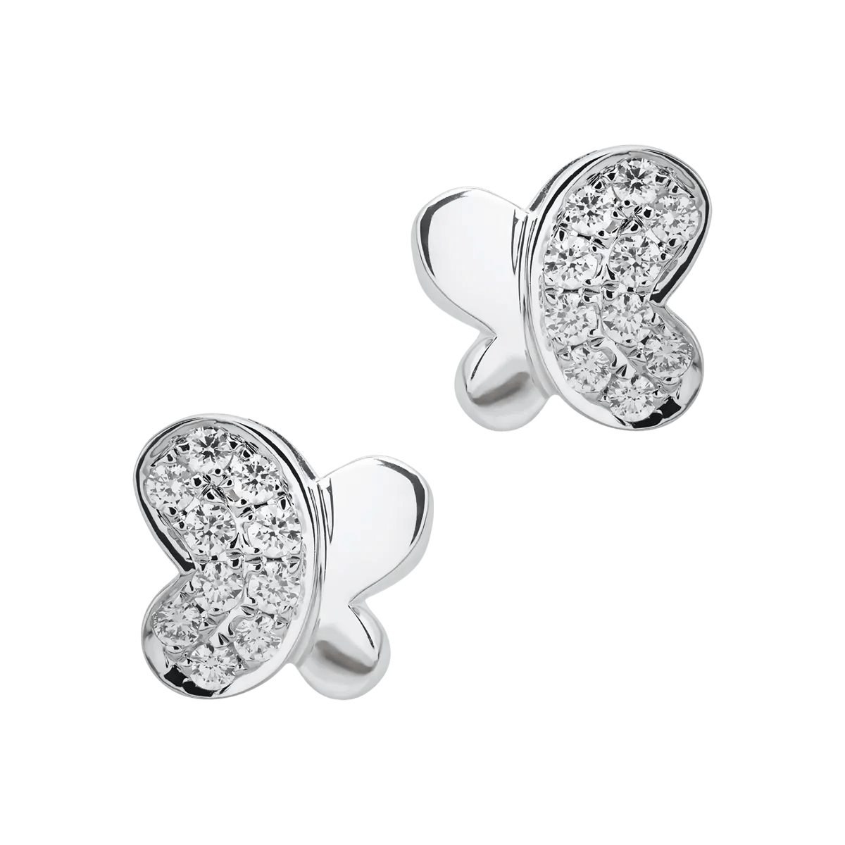 Cercei fluturași din aur alb, înfrumusețați cu diamante totalizând 0.26ct, aduc o notă de rafinament oricărei ținute. Designul lor atemporal îi transformă într-un accesoriu cheie pentru elegantele colecții TEILOR.