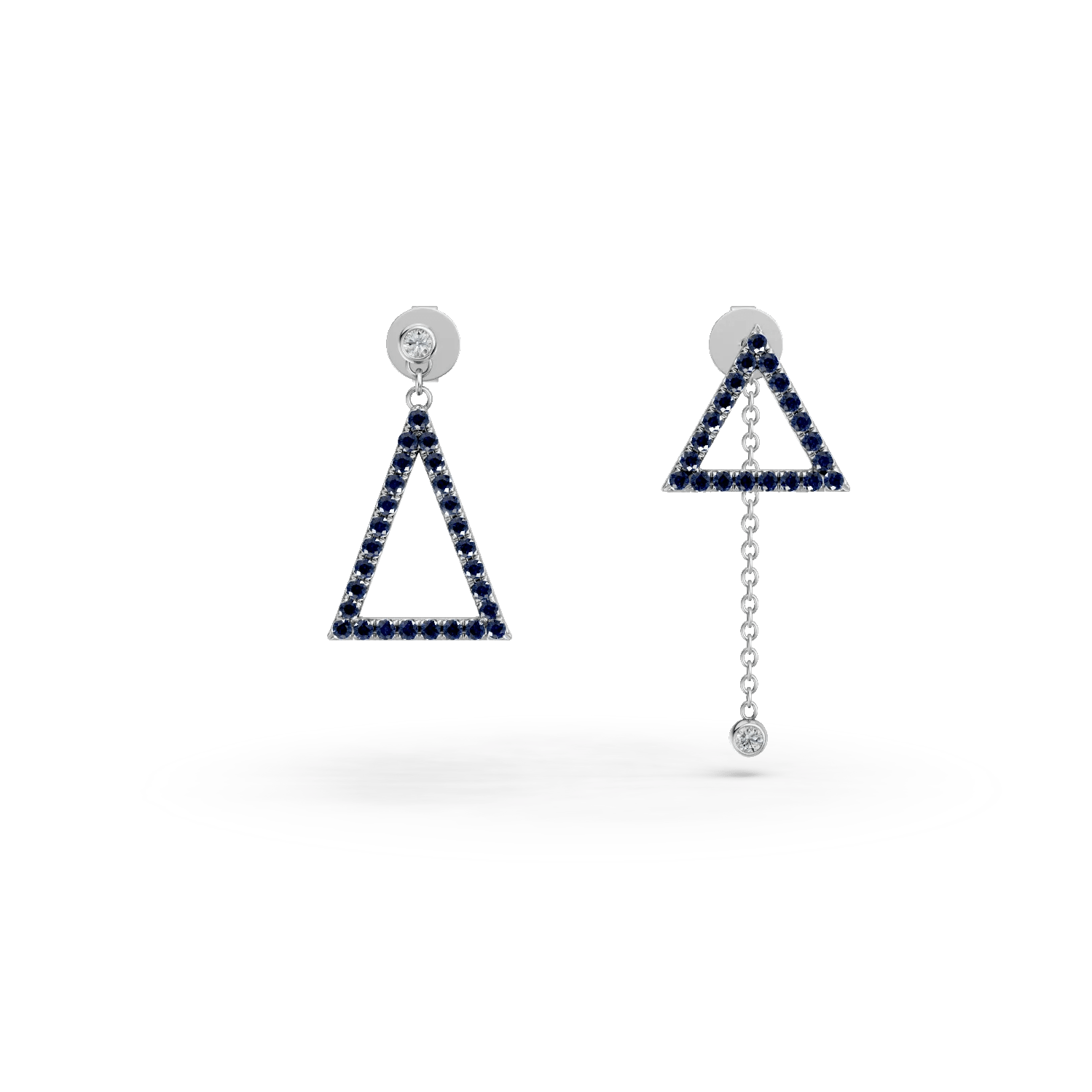 Acești cercei eleganți din aur alb, încorporați cu safire de 0.5ct și diamante de 0.07ct, combină designul geometric modern cu pietre prețioase fine. Contrastul între aurul alb strălucitor și nuanțele calde ale safirelor este accentuat de diamantele strălucitoare, conferind un efect vizual irezistibil. Cu forme curate și finisaje de înaltă calitate, acești cercei sunt ideali pentru femeia cu un simț sofisticat al detaliilor și sunt potriviți atât pentru ocazii de zi, cât și de seară.