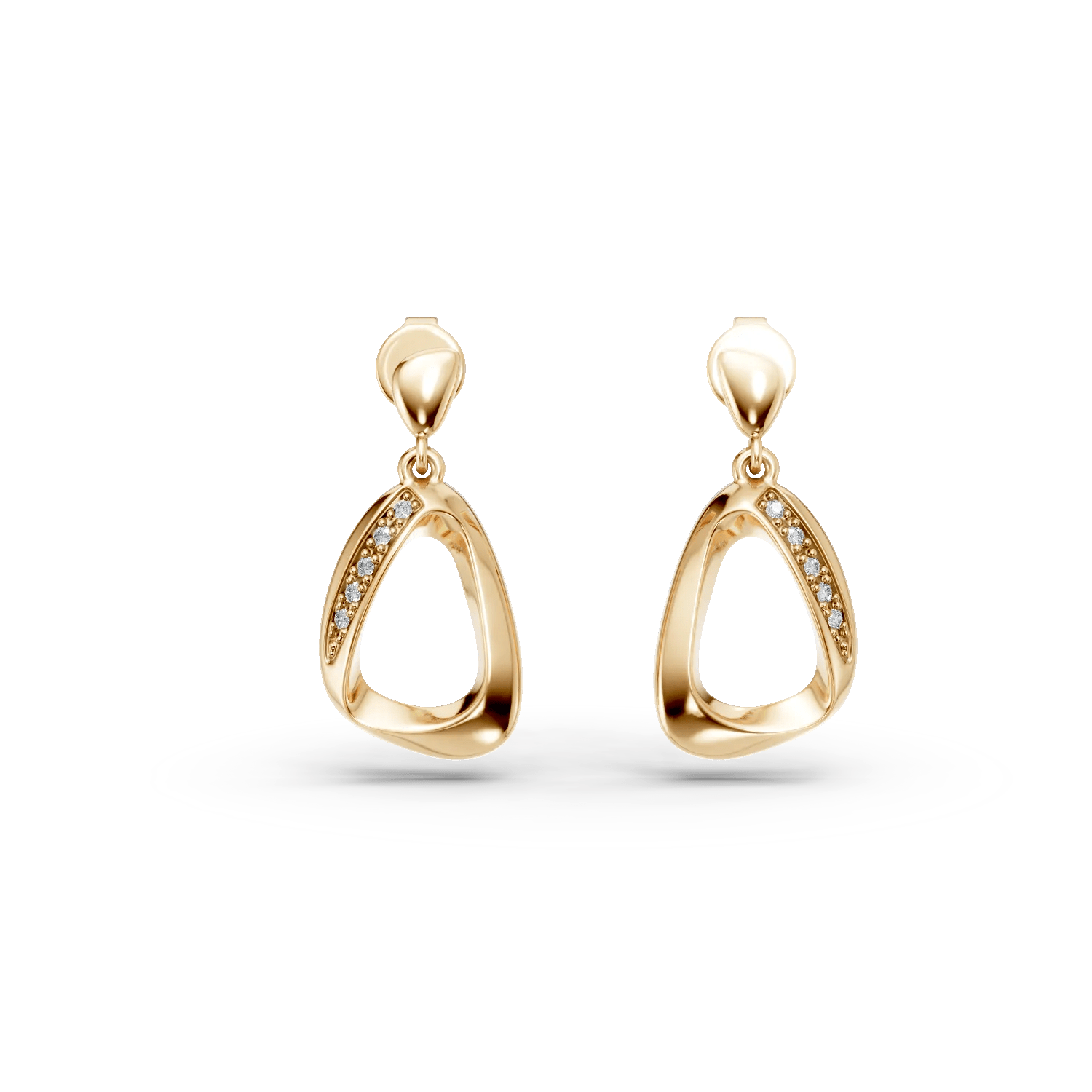 Acesti cercei geometrici din aur galben, încrustați cu diamante de 0.04ct, îți reflectă personalitatea radiantă. Alege o bijuterie de la TEILOR pentru a sărbători frumusețea și stilul tău inconfundabil.