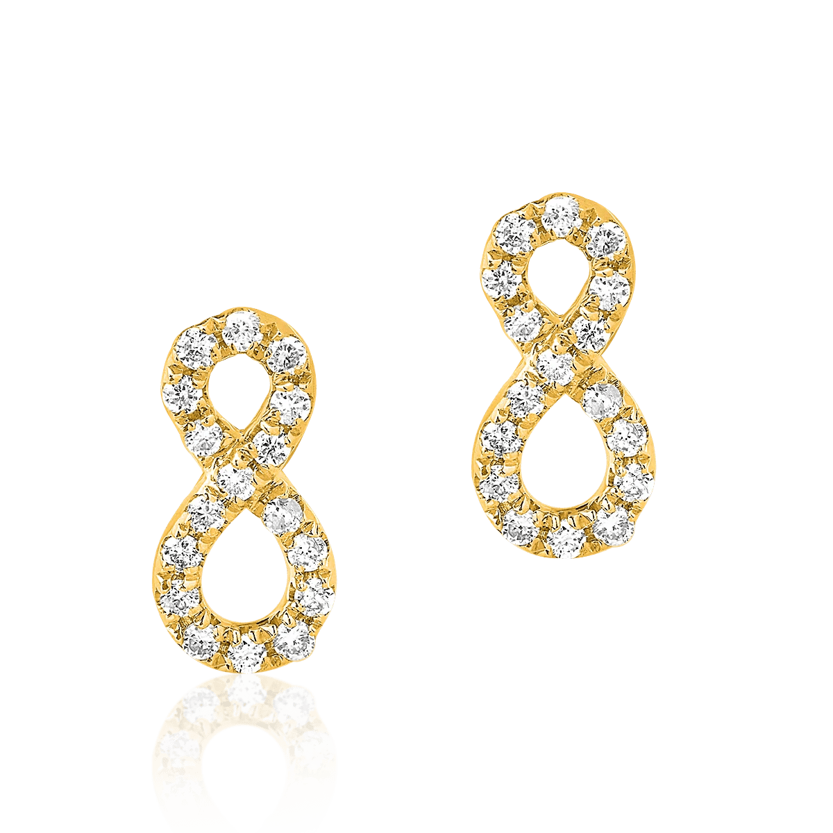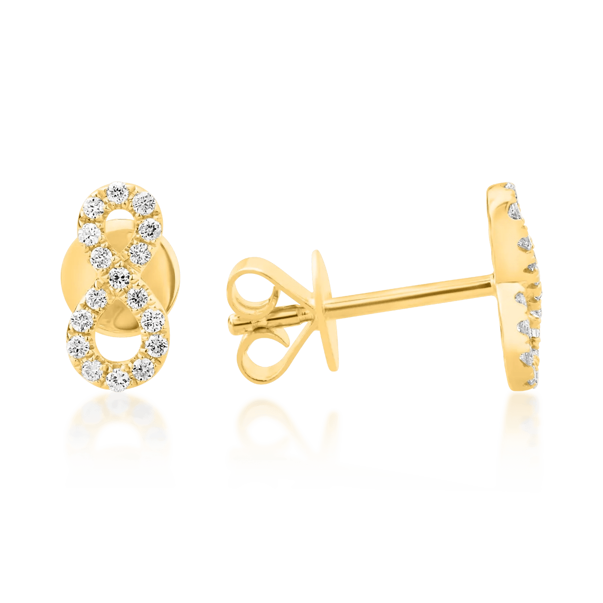 Adaugă eleganță ținutelor tale cu acești cercei infinit din aur galben, îmbogățiți cu diamante de 0.126ct. Designul lor atemporal îi face ideali pentru a sublinia fiecare clipă specială.
