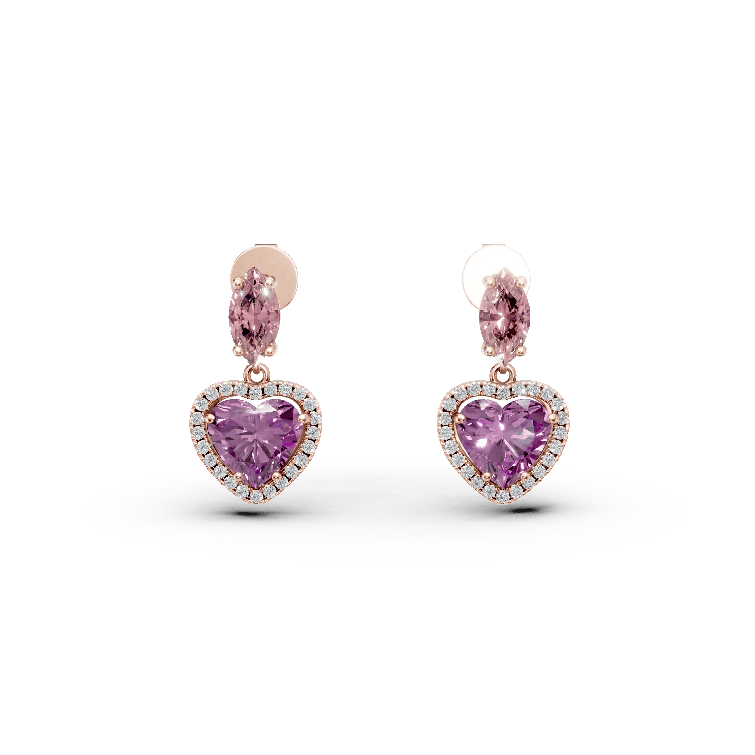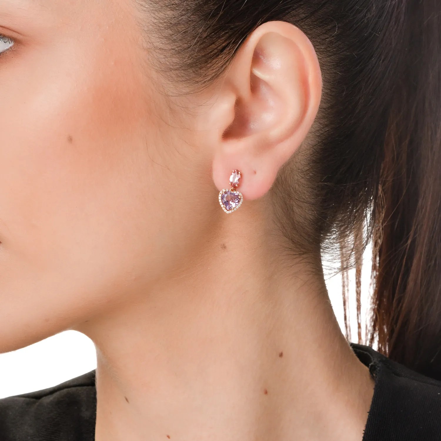 Intră în universul bijuteriilor captivante cu acești cercei inimioare din aur roz, având pietre prețioase și semiprețioase de 3.4ct. Montura elegantă subliniază echilibrul dintre delicatețe și sofisticare, făcându-i ideali pentru a adăuga un plus de feminitate și expresivitate stilului tău.
