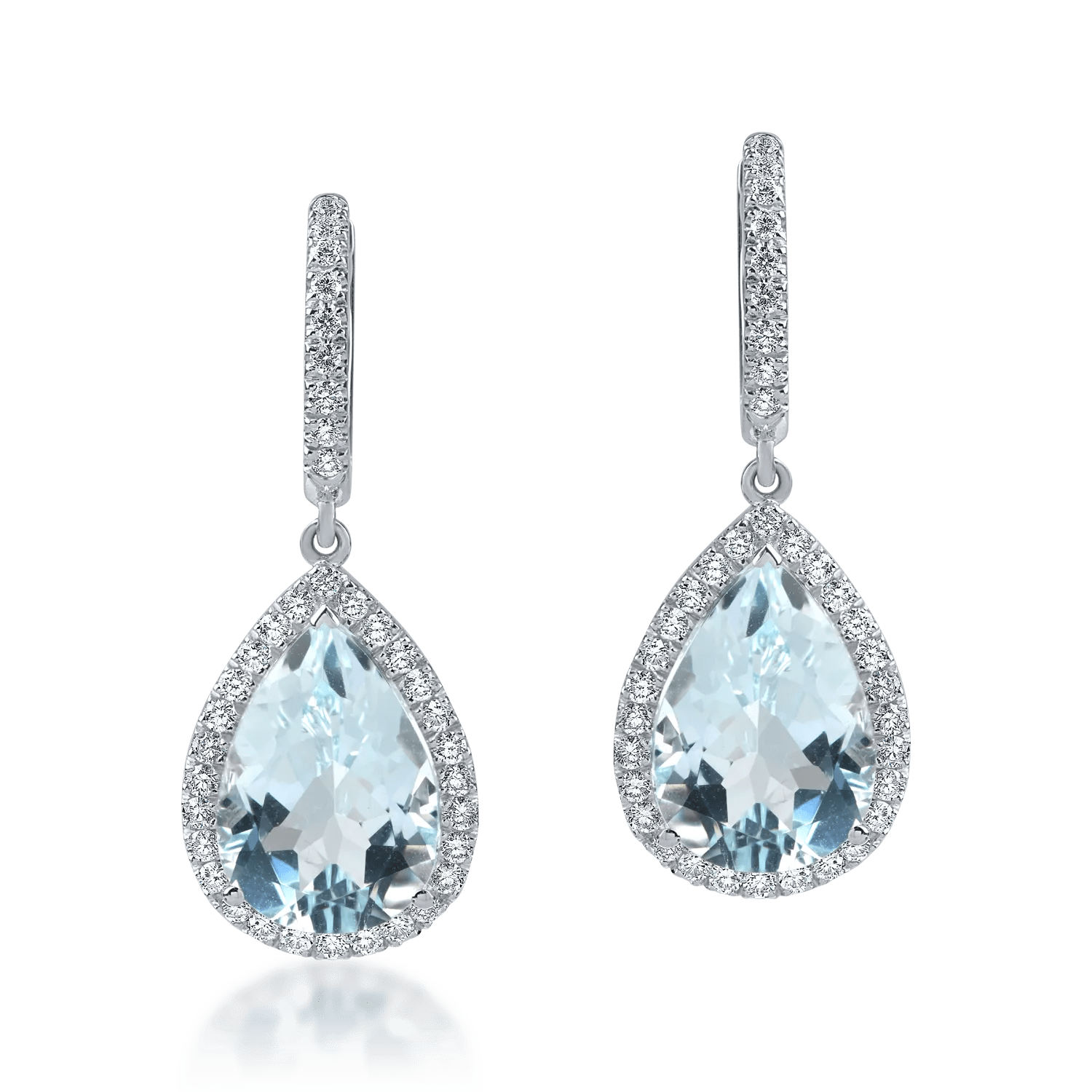 Cercei lacrimă din aur alb cu acvamarine octogonale de 6.7ct și diamante de 0.6ct