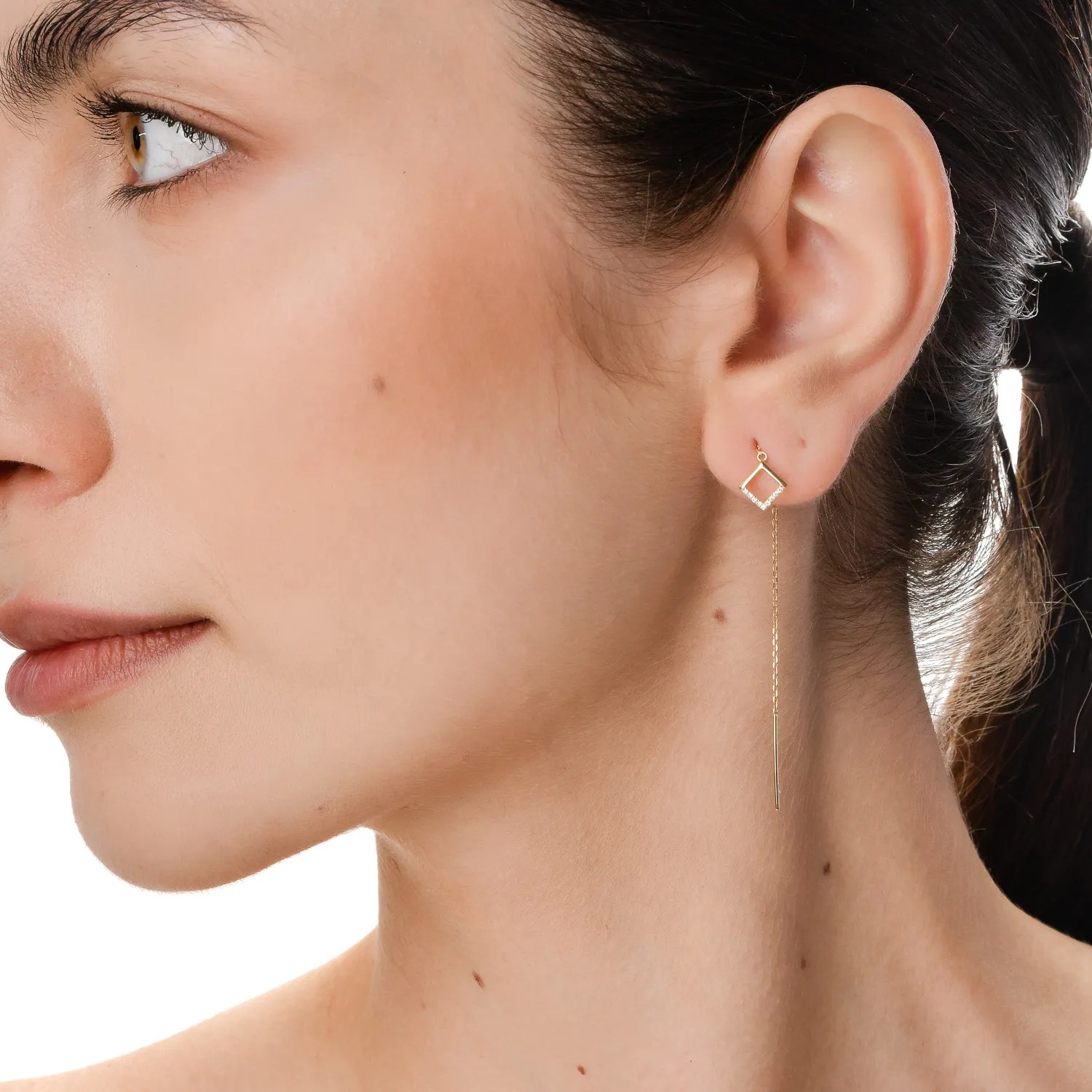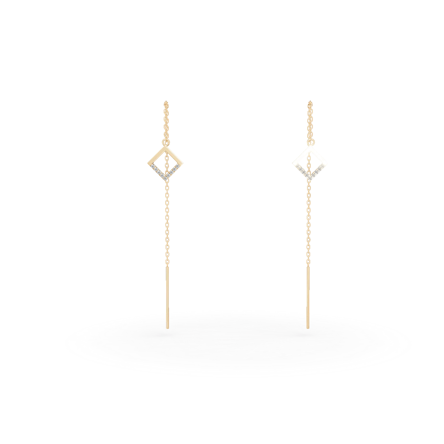 Designul autentic al cerceilor lungi din aur galben, împodobit cu detalii geometrice și diamante de 0.05ct, adaugă eleganță fiecărei ținute. Lasă aceste bijuterii să reflecte personalitatea ta.