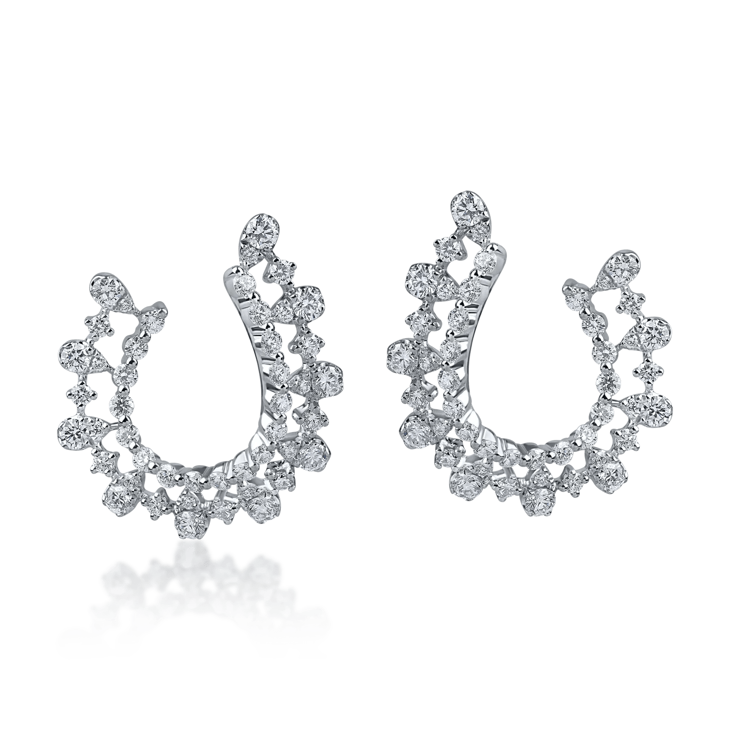 Aceşti cercei on ear din aur alb impresionează prin diamantele de 1.7ct, adăugând o notă distinctă oricărei ţinute. Descoperă eleganţa şi originalitatea oferite de această creaţie TEILOR.