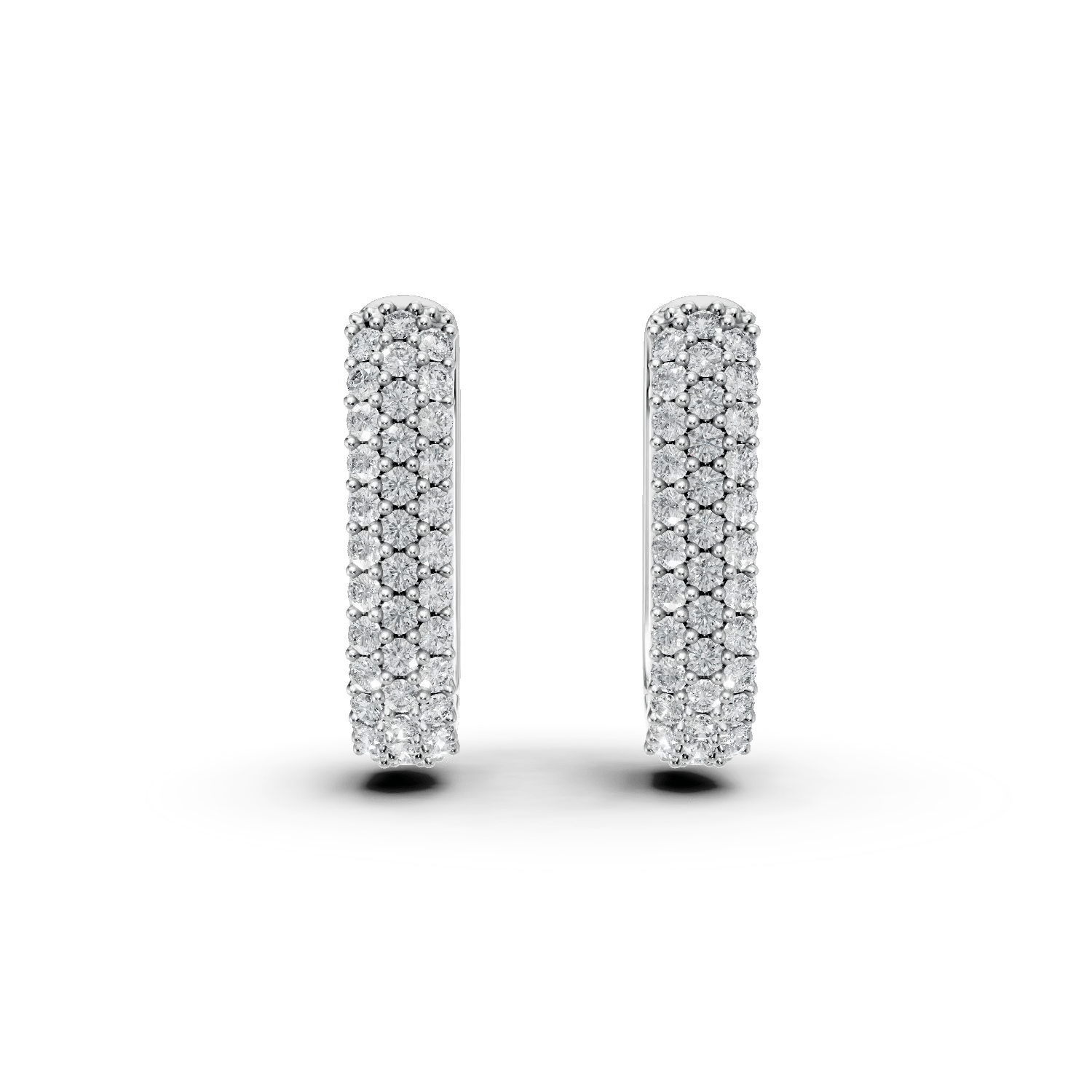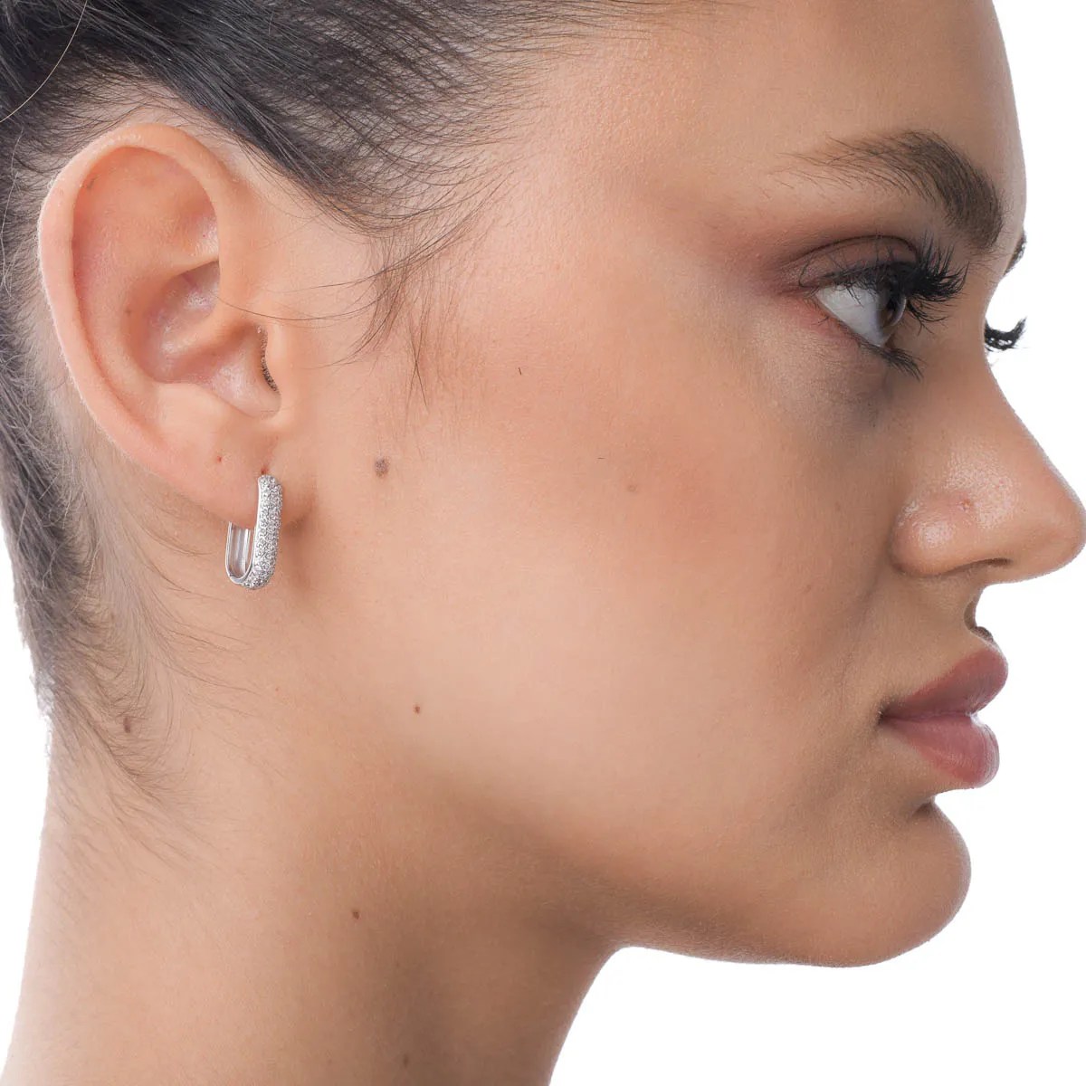 Cercei eleganți în formă ovală, realizați din aur alb și împodobiți cu zirconii strălucitoare. Aceștia sunt alegerea perfectă pentru a-ți evidenția stilul personal. TEILOR te inspiră să creezi o apariție de neuitat.