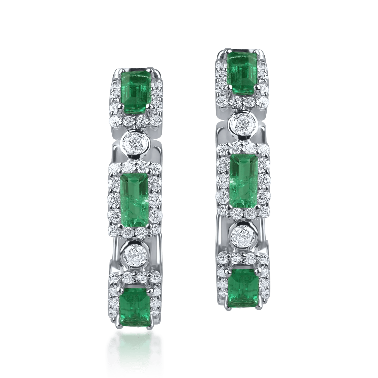 Descoperă strălucirea acestor cercei din aur alb, înfrumusețați cu smaralde rectangulare de 0.7ct și diamante de 0.5ct. Smaraldele oferă o adâncime verde spectaculoasă, iar diamantele adaugă o lumină intensă, creând un contrast rafinat. Designul elegant este o reinterpretare modernă a stilului clasic.