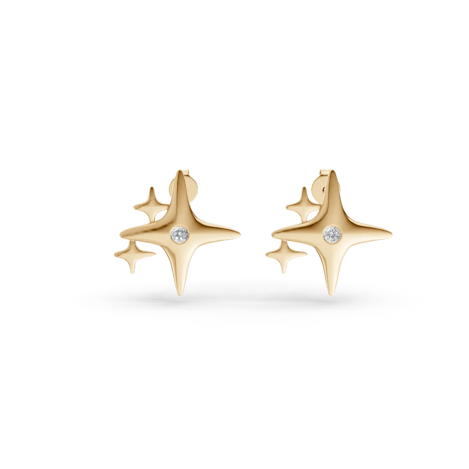Aceste bijuterii adaugă un aer de eleganță și rafinament stilului tău, datorită designului original. Cerceii stele din aur galben, înfrumusețați cu diamante de 0.006ct, combină cu grație modernul cu clasicul. Captivează emoția fiecărui moment cu această piesă delicată.