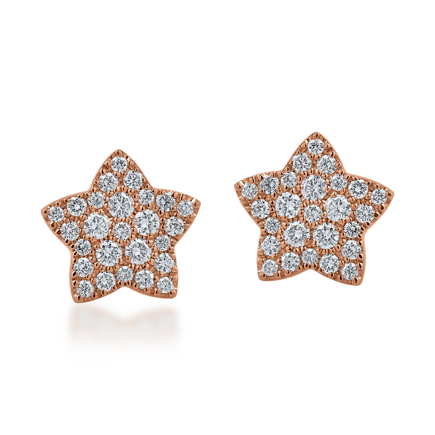 Perechea de cercei steluțe din aur roz, înfrumusețată cu diamante de 0.44ct, combină strălucirea cu eleganța într-un design deosebit. Ideali pentru momente speciale, acești cercei adaugă un plus de rafinament.