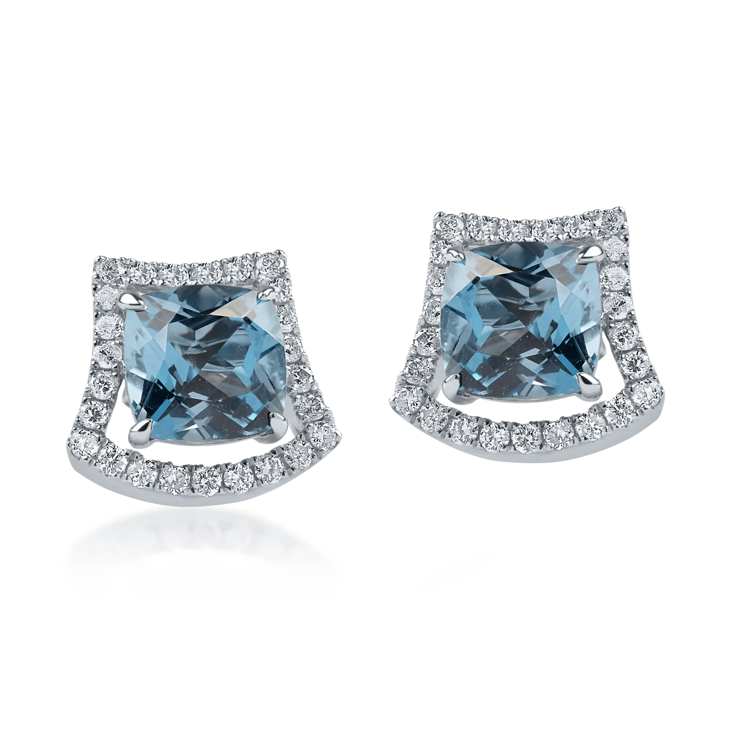 Descoperă eleganța subtilă a cerceilor cu topaze London Blue de 3.816ct, ale căror tăieturi geometrice îmbogățesc intensitatea culorii. Diamantele de 0.407ct oferă un contrast luminos, completând perfect nuanțele pietrelor centrale. Designul sofisticat evidențiază rafinamentul atemporal.