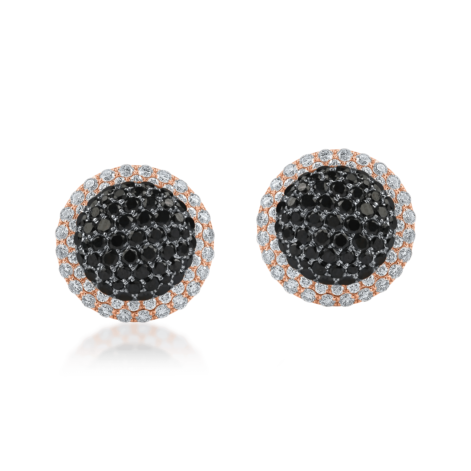 Descoperiți eleganța rafinată cu acești cercei stud din aur alb-roz, înfrumusețați cu diamante de 2.7ct. Ideali pentru a adăuga un accent strălucitor oricărei ținute și a celebra momentele speciale.