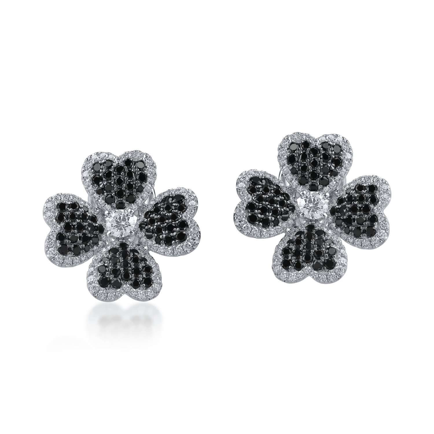 Cerceii trifoi din aur alb iluminează cu diamante negre și incolore de 2.1ct, oferind un efect captivant cu fiecare rază strălucitoare de lumină. Fiecare moment poartă emoția transmisă de TEILOR.