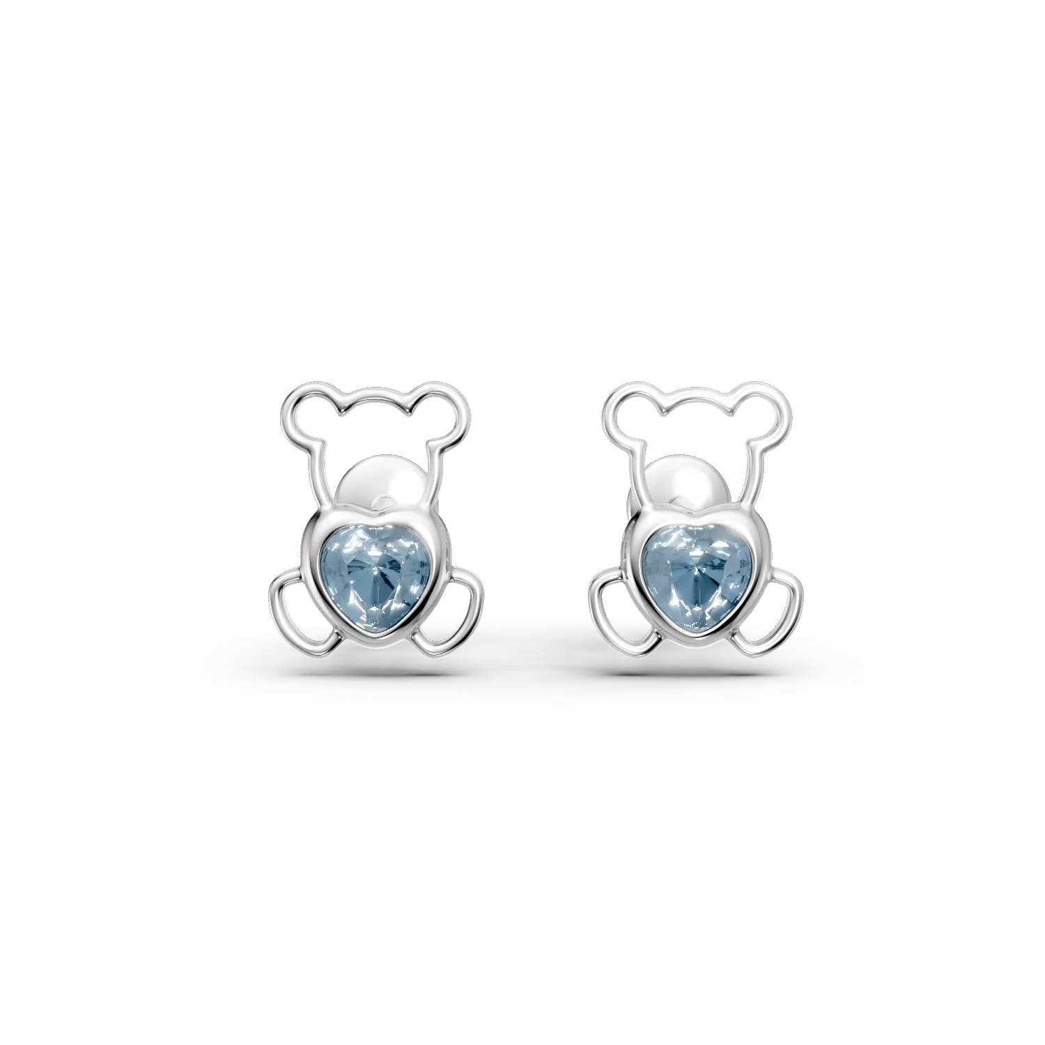 Cerceii ursuleț din aur alb cu topaze albastre Heart de 0.2ct aduc strălucirea senină a cerului într-un design plin de candoare. Pietrele în formă de inimă adaugă un accent vesel și delicat, completând perfect aspectul jucăuș și tandru al ursulețului.