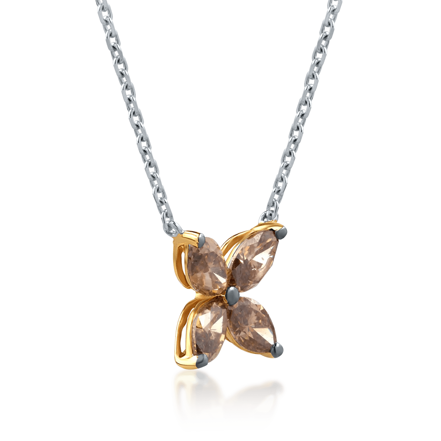 Acest colier din aur alb cu diamante maro, de 1.49ct, emană rafinament și eleganță. Tăietura marquise, faimoasă pentru forma sa alungită, pune în evidență strălucirea și adaugă un efect de alungire gâtului. Reflexiile calde și sofisticate ale diamantelor maro completează acest accesoriu deosebit.