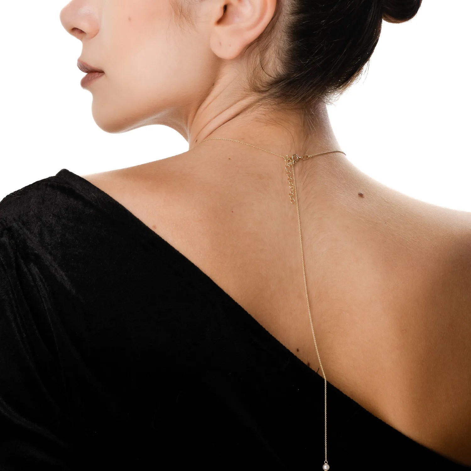 Acest colier din aur galben cu perle naturale și lanț destinat zonei posterioare este ideal pentru a adăuga un aer sofisticat și elegant oricărei ținute. Stilul său rafinat și textura fină a perlelor îl fac perfect pentru evenimente sau ocazii speciale.