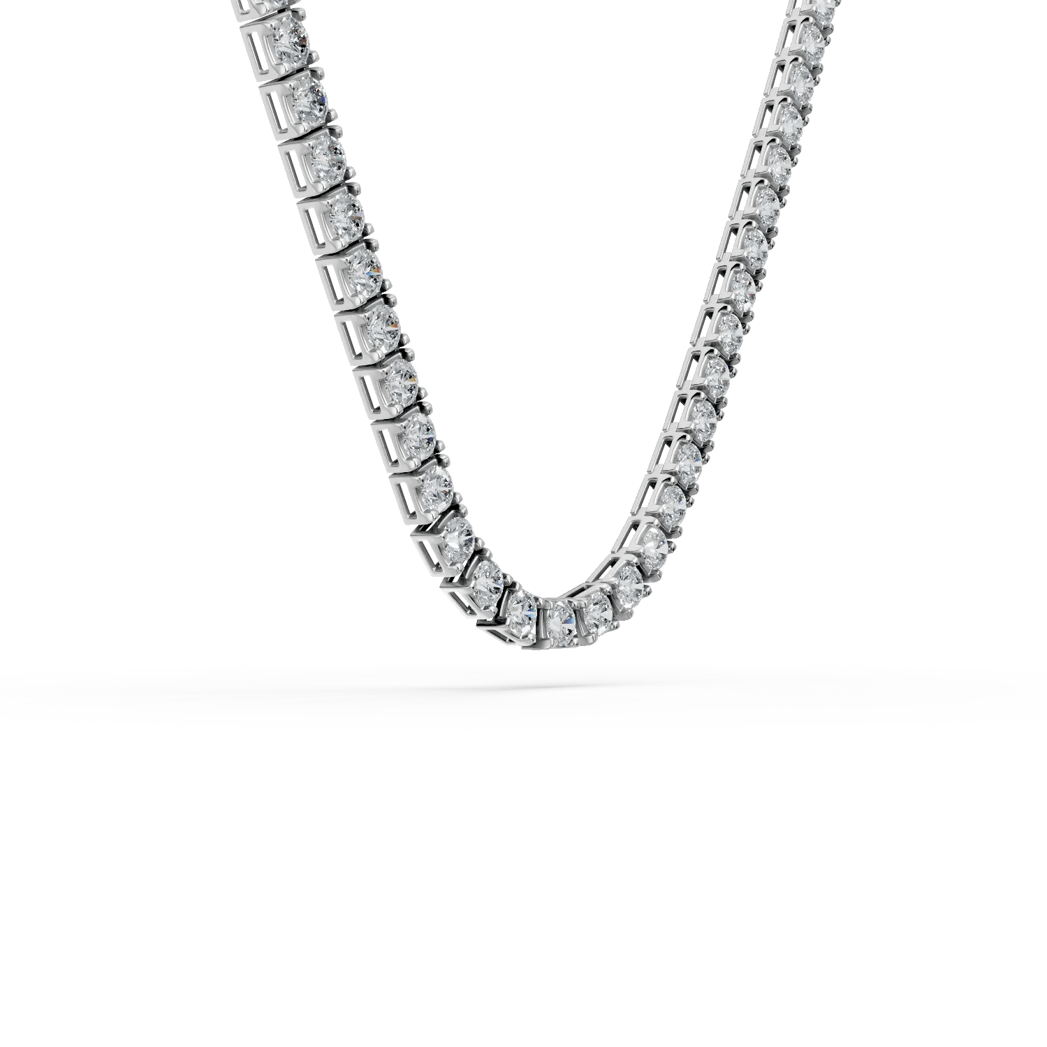Diamantele strălucesc delicat într-un colier ce reflectă echilibrul și rafinamentul. Aurul alb conturează armonios diamantele de 4.9ct, formând un design clasic și atemporal. Este alegerea perfectă pentru femeia care apreciază frumusețea simplă.