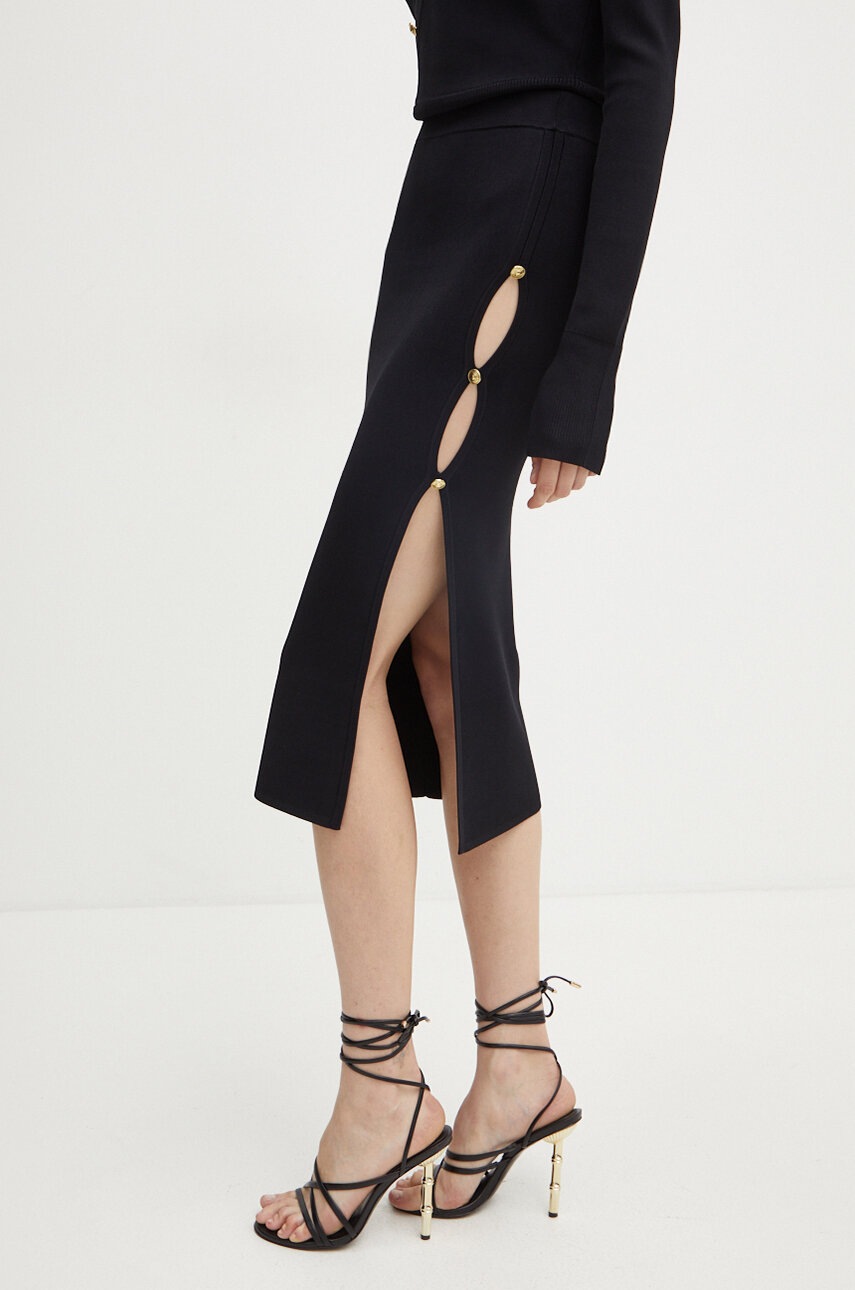 - Croială în cloș cu talie înaltă și bandă elastică pentru susținere.