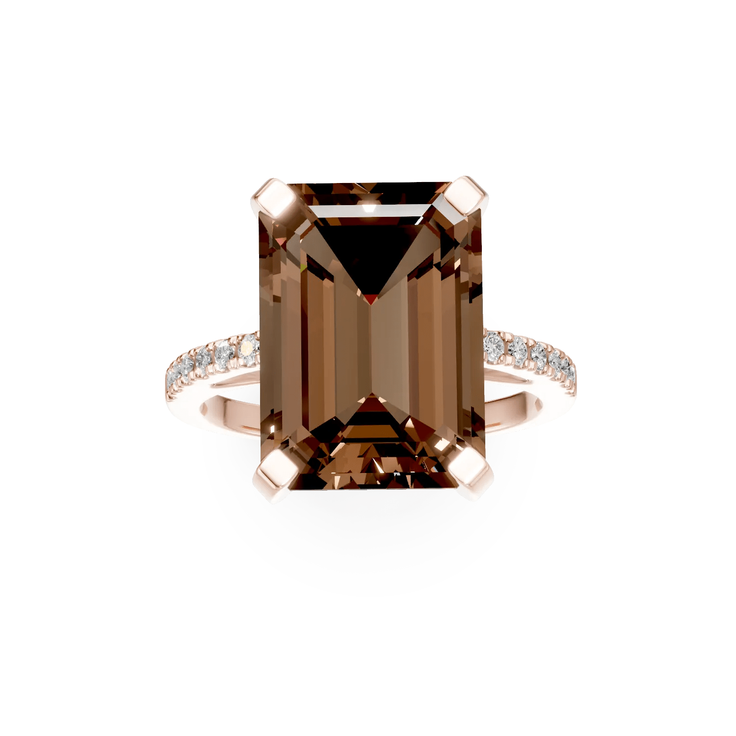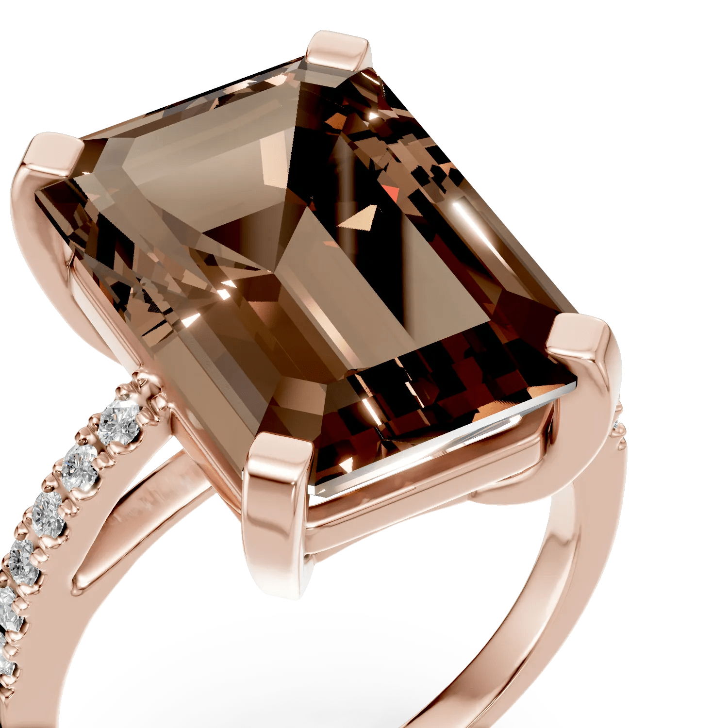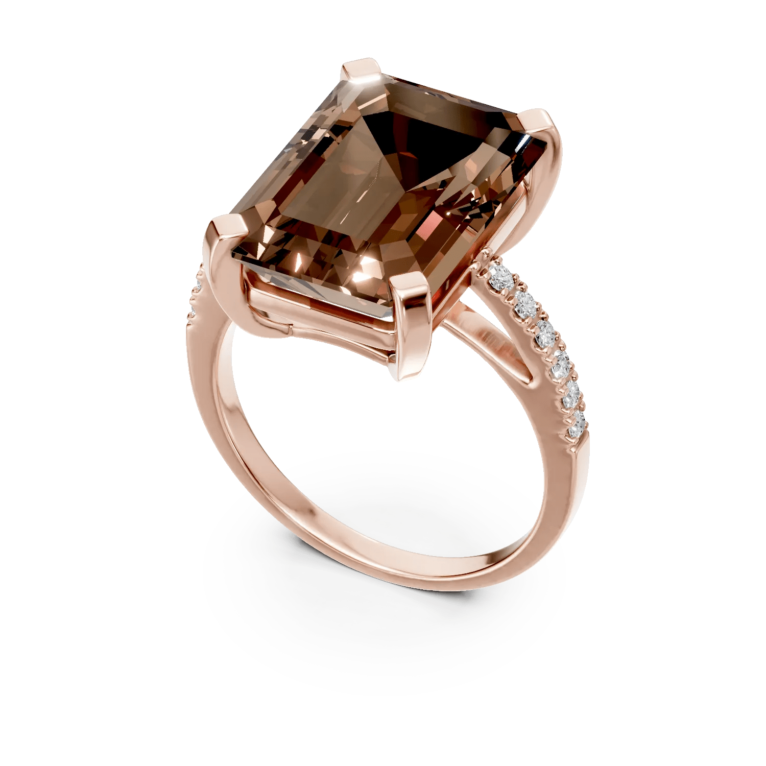 Acest inel din aur roz, cu un cuart fumuriu de 5.4ct și diamante de 0.1ct, adaugă o notă de eleganță subtilă ținutelor tale. Pietrele sunt atent tăiate, oferindu-i un efect vizual sofisticat și o strălucire naturală. Nuanta caldă de maro se combină cu aurul roz, reflectând o armonie perfectă între stil și rafinament.