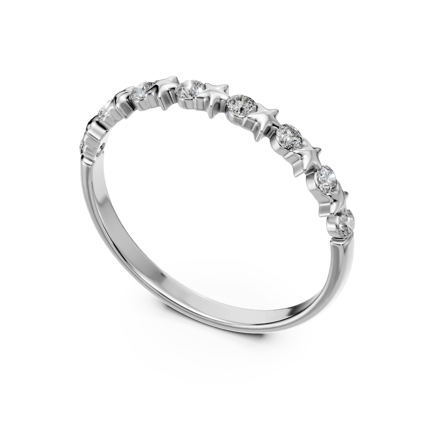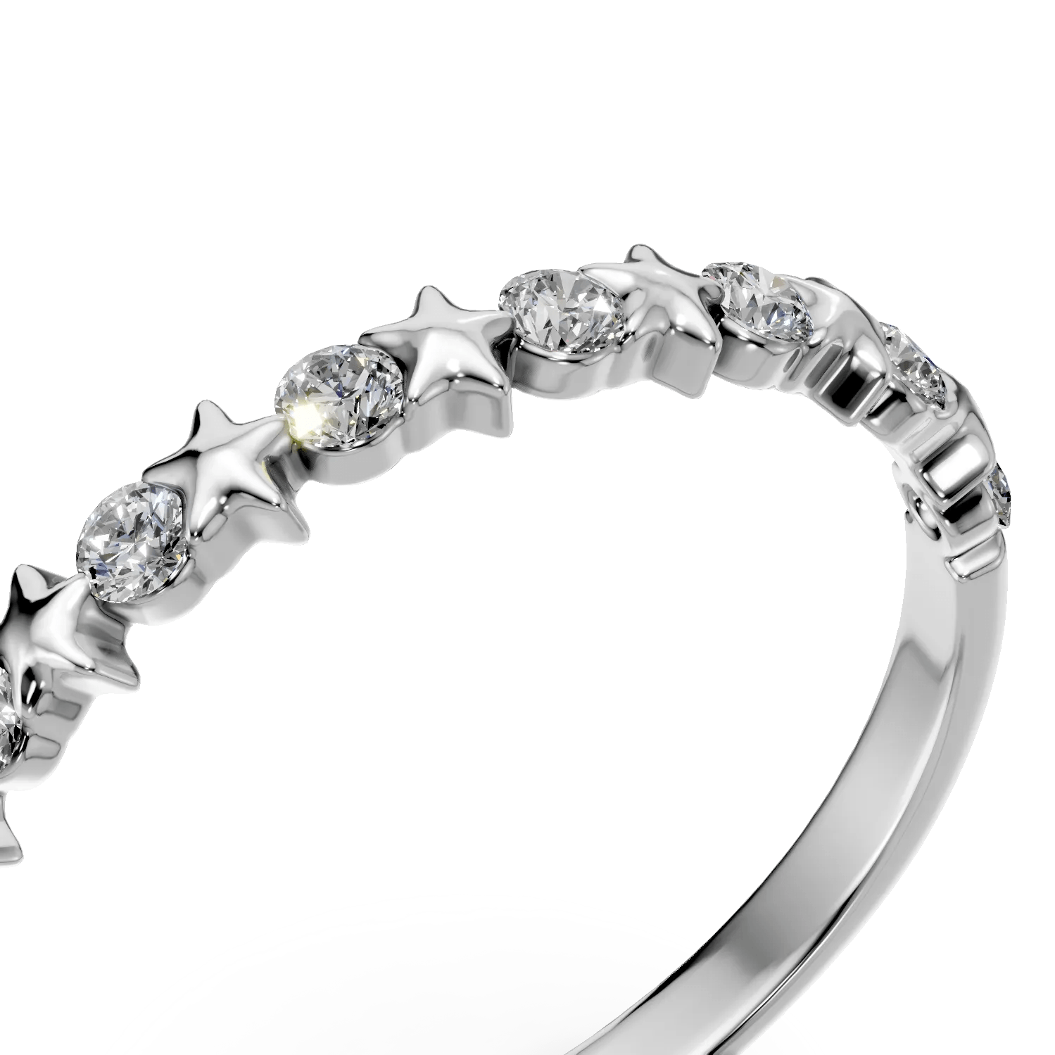 Îmbrățișează eleganța cu acest inel din aur alb, decorat cu diamante de 0.1ct. Creat cu pasiune, această bijuterie îți va defini stilul și te va face să te simți specială. O combinație perfectă între lux și rafinament, ideală pentru femeile puternice.