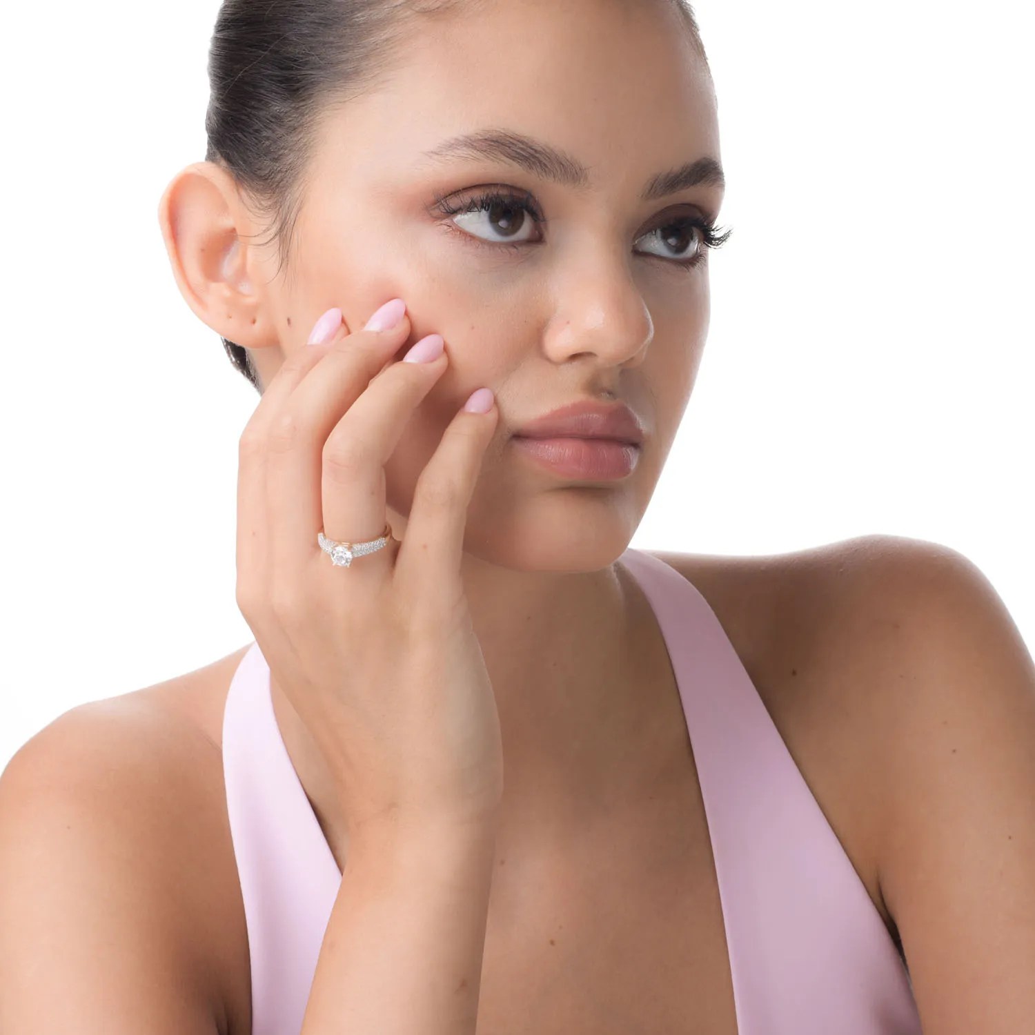 Designul său echilibrat subliniază claritatea zirconiilor, creând o bijuterie potrivită pentru momentele de sinceritate și emoție. Tonul cald al aurului adaugă un aer de rafinament unei declarații de dragoste care va dăinui în timp.