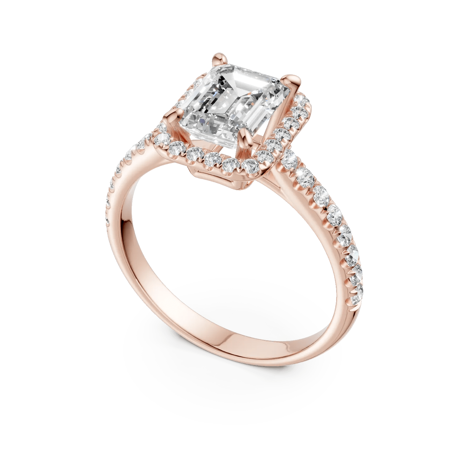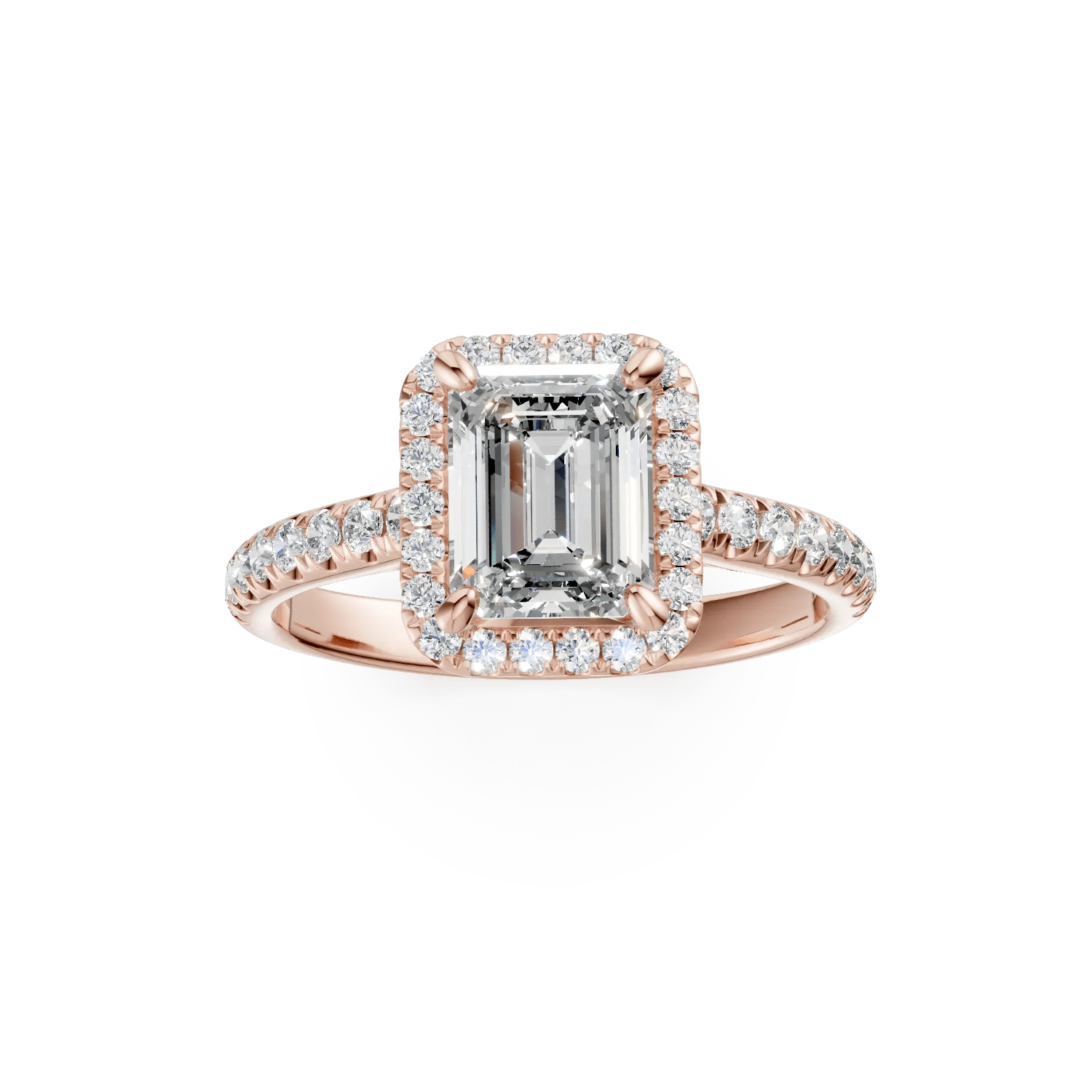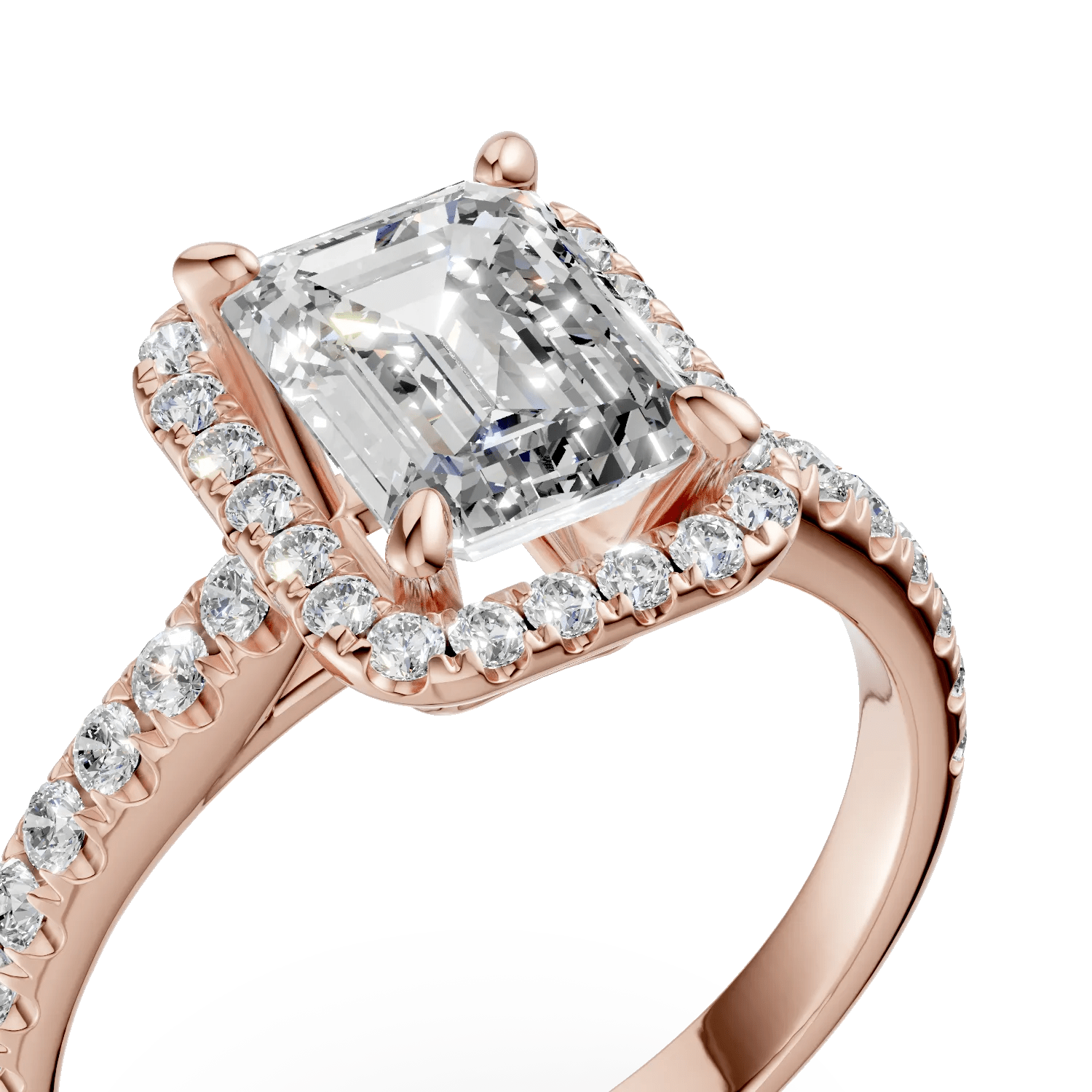 Alege un simbol al iubirii adevărate cu acest inel de logodnă realizat din aur roz. Piesa centrală este un diamant radiant de 1.5ct, completat de diamante de 0.4ct, care se remarcă printr-un design clasic și linii rafinate.
