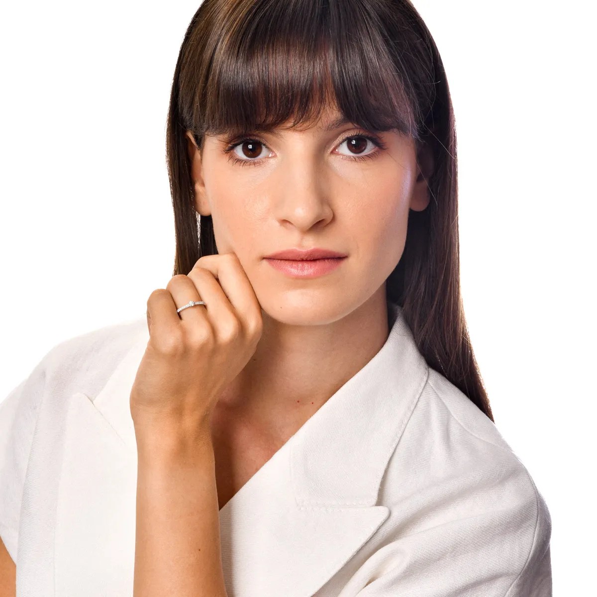Transformă un moment special cu un inel din colecția Love Stories. Realizat din aur alb, acest inel de logodnă îmbină diamante de 0.1ct într-un design elegant și armonios.