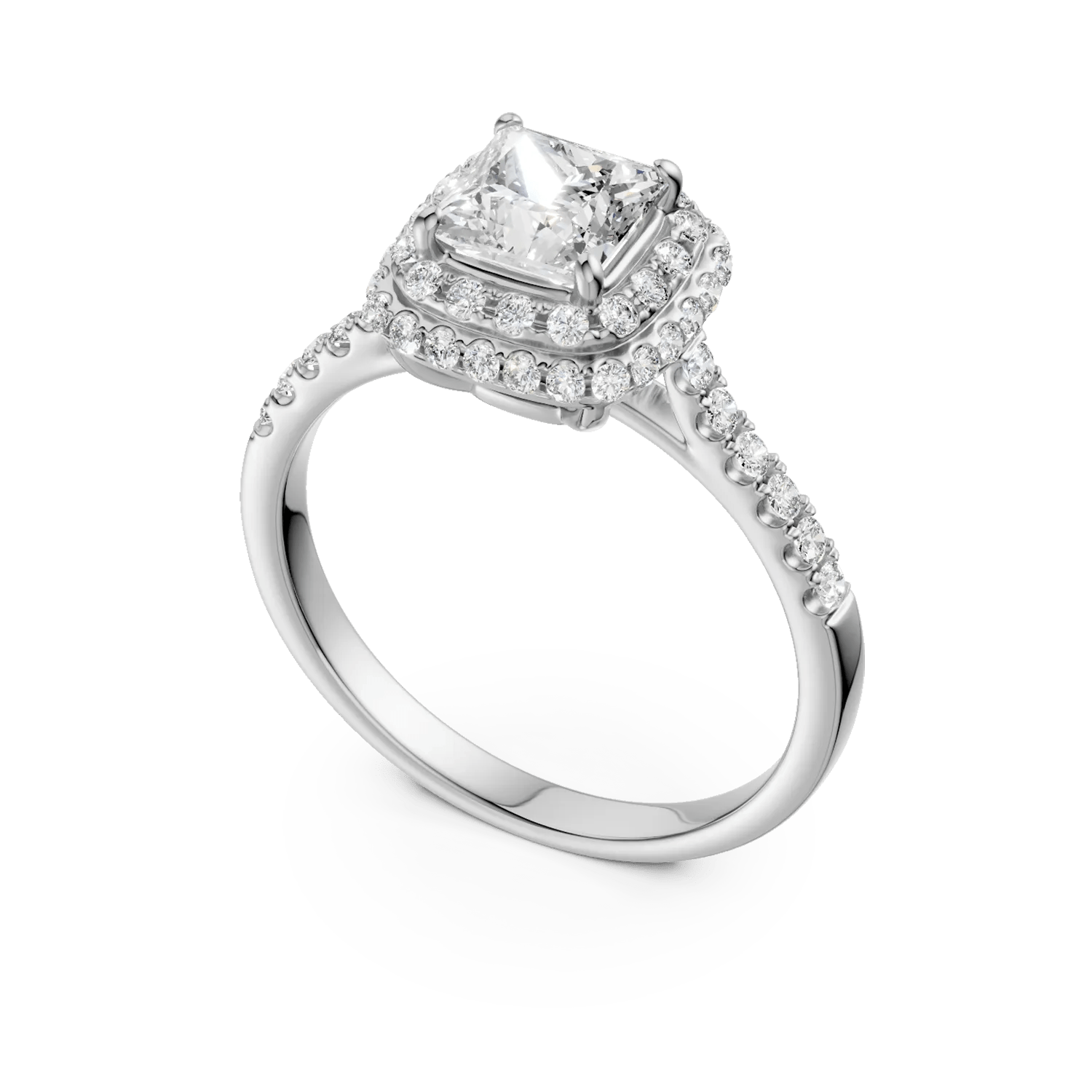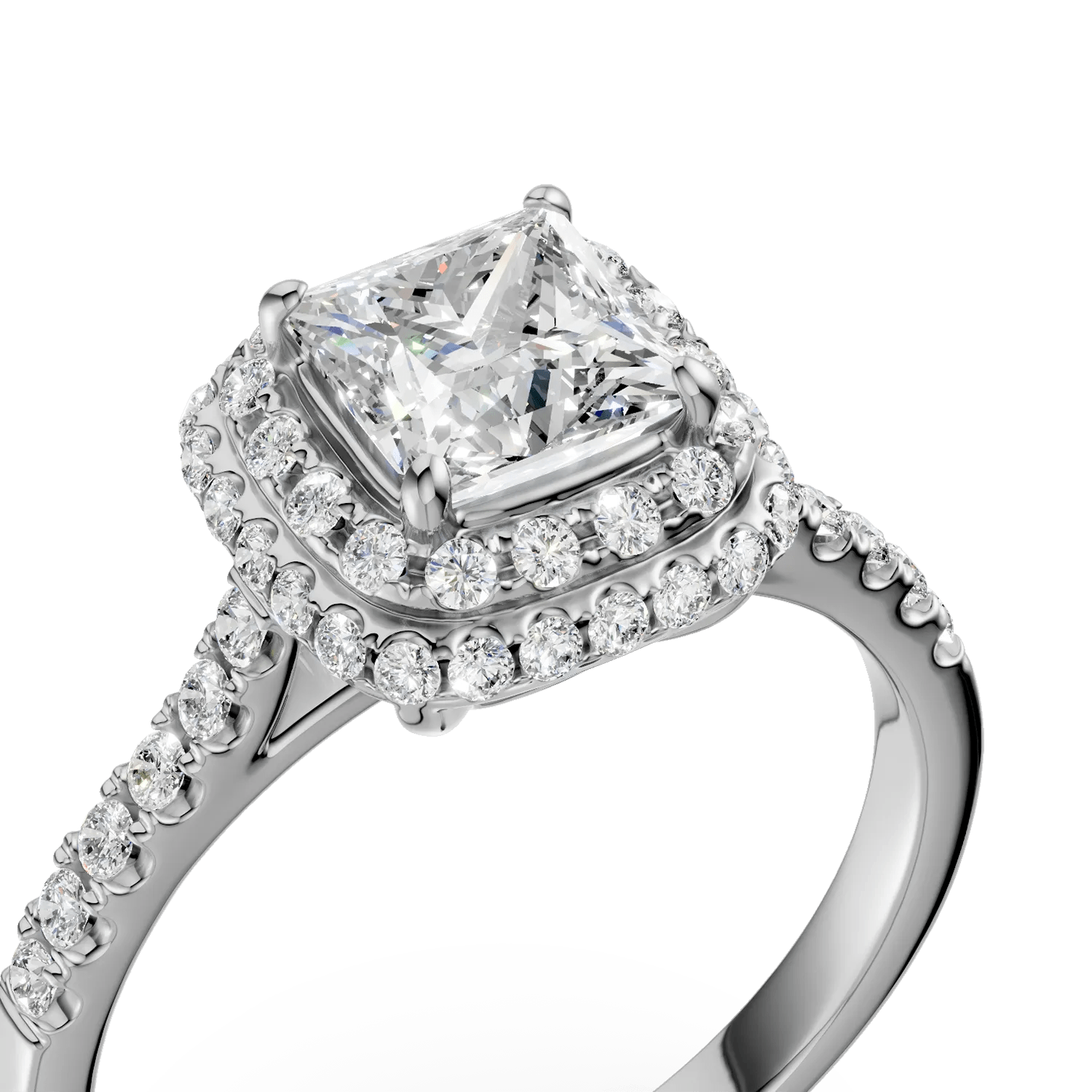 Inel de logodnă din aur alb cu diamant square de 1.01ct și diamante de 0.39ct