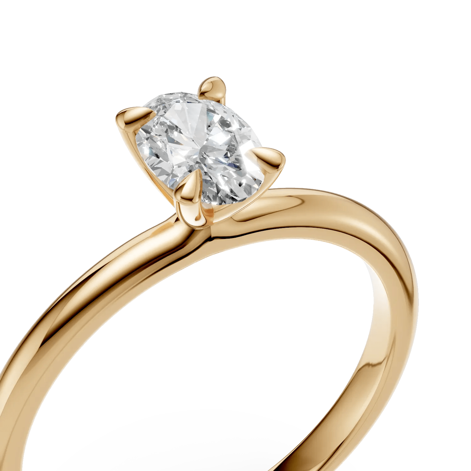 Descoperă frumusețea atemporală cu acest inel de logodnă din aur galben, având un diamant oval de 0.4ct. Designul său clasic și montura delicată scot în evidență strălucirea și puritatea remarcabilă a diamantului. Acest simbol al iubirii este susținut de un certificat de autenticitate și calitate GIA.