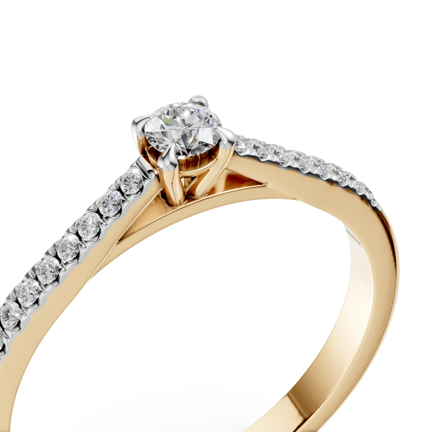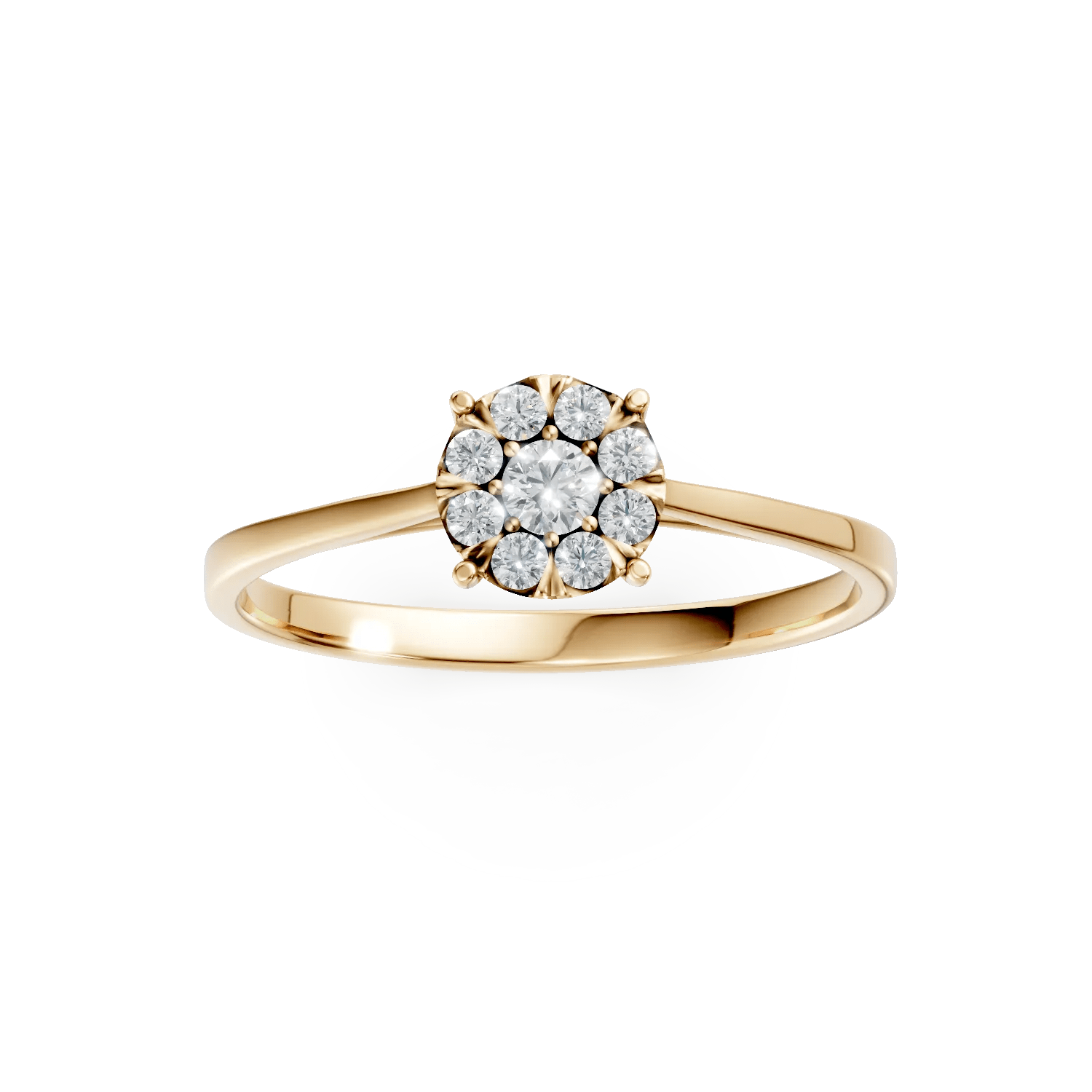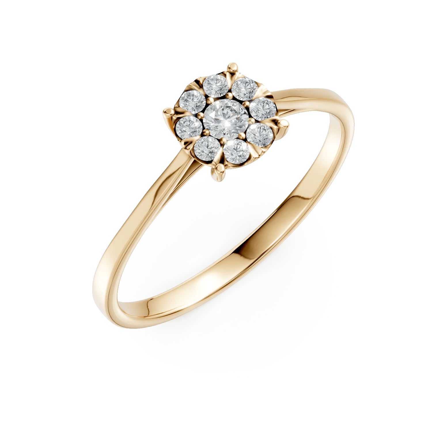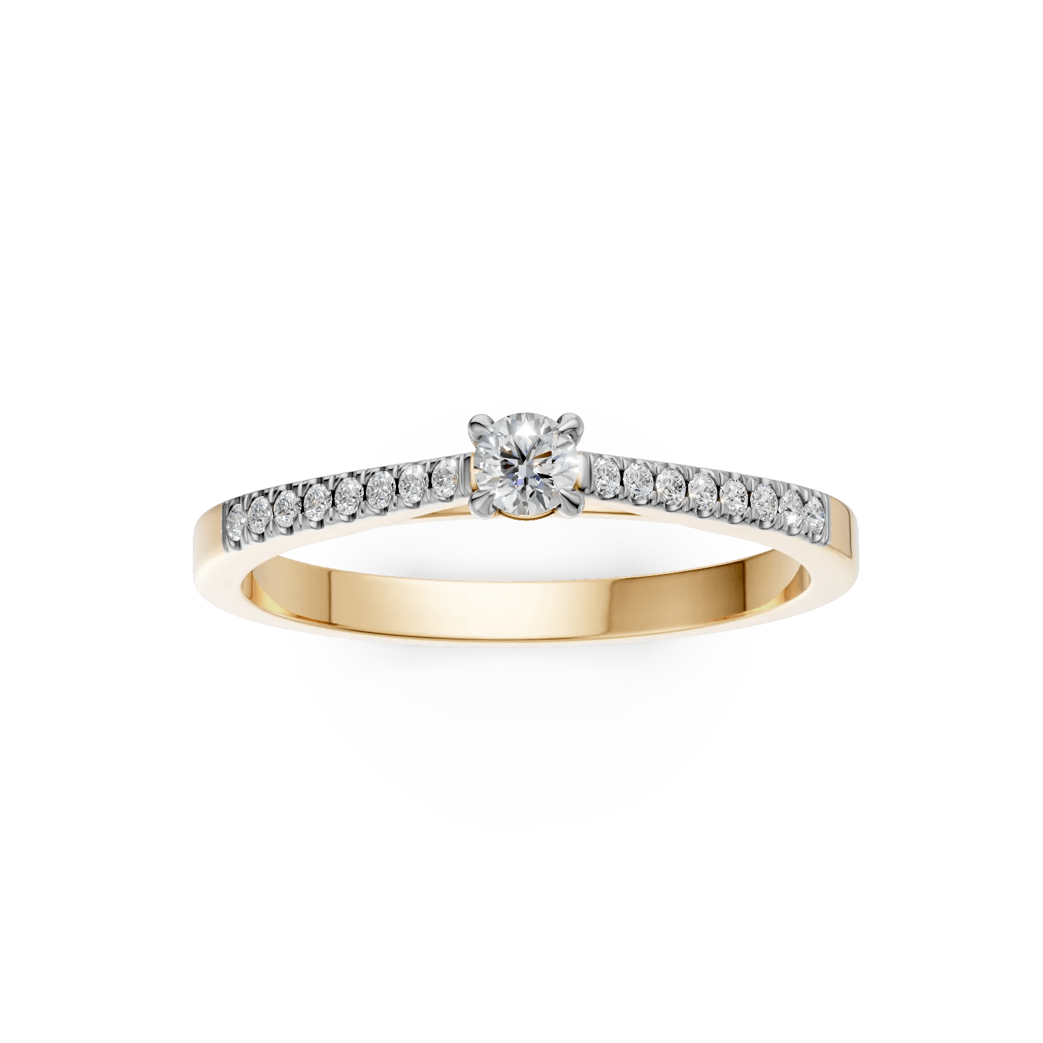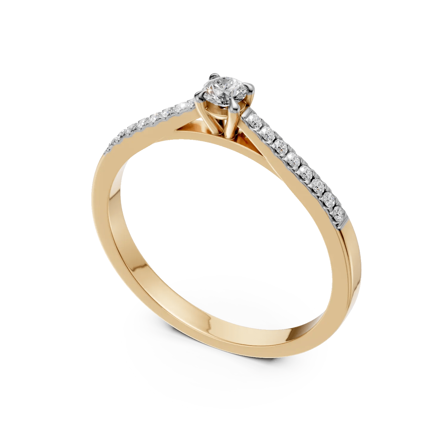 Un gest emoționant și elegant, acest inel de logodnă din aur galben cu diamante de 0.2ct este creat pentru a celebra iubirea adevărată. Designul său modern evidențiază frumusețea fiecărei fațete, combinând strălucirea diamantelor cu nuanța caldă a aurului.