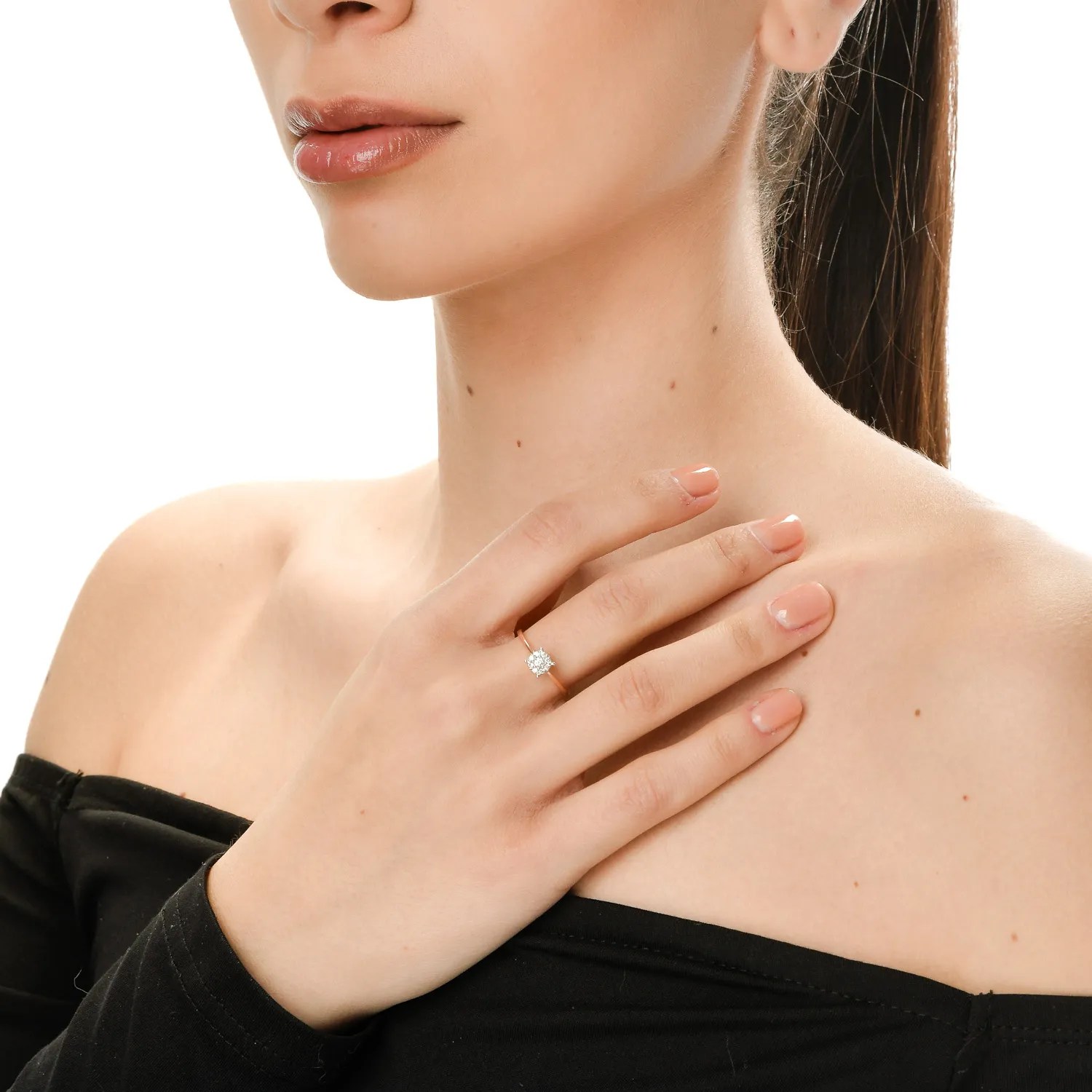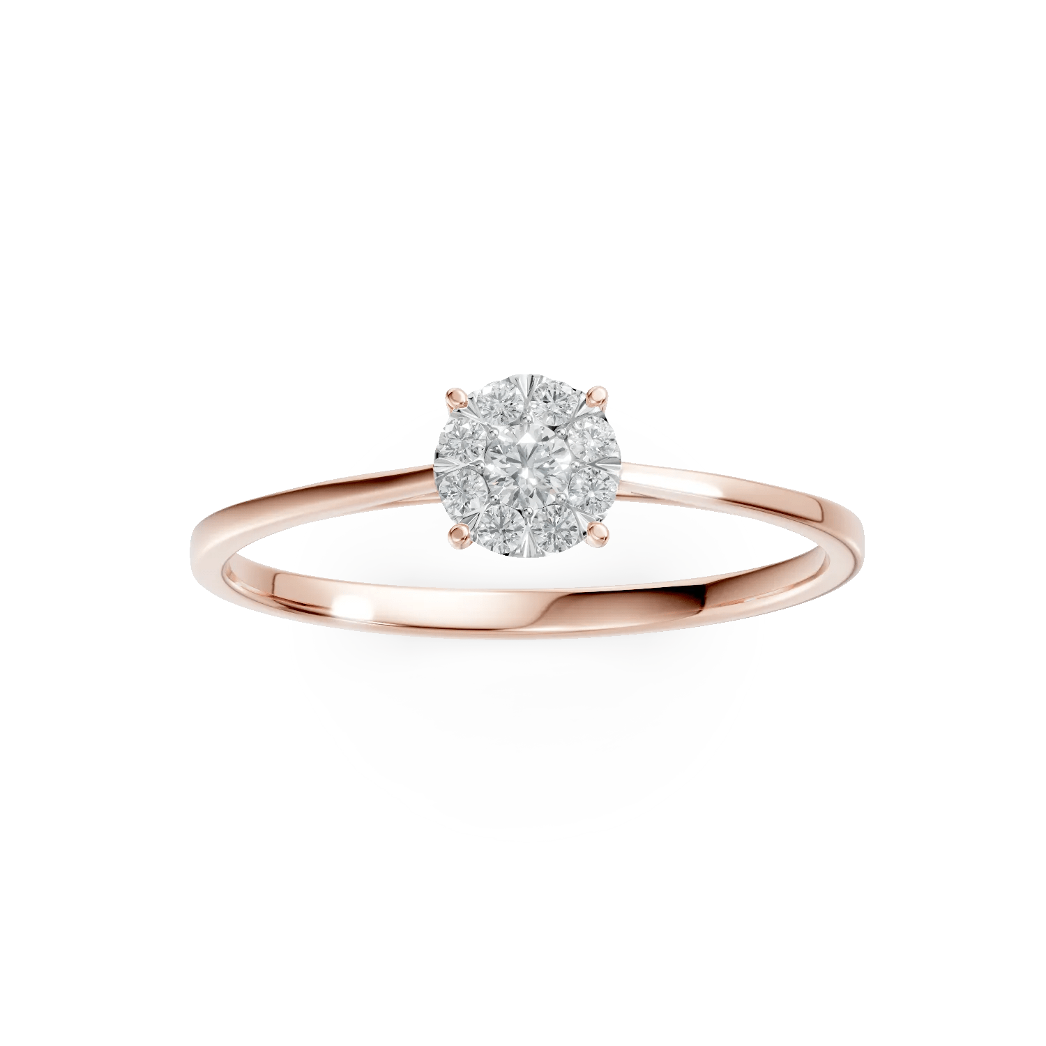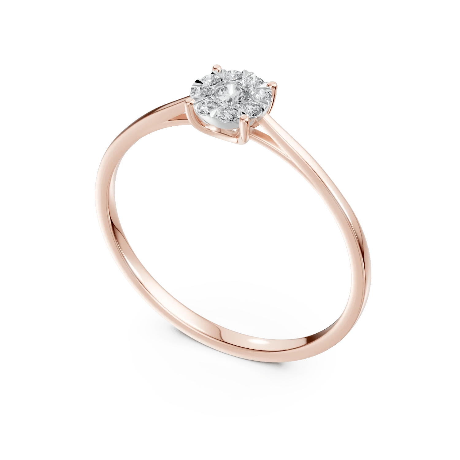 Surprinde emoția unui moment unic cu acest inel de logodnă din colecția Love Stories. Confectionat din aur roz, cu diamante de 0.15ct, inelul captivează prin designul său sofisticat și echilibrat. Strălucirea delicată a diamantelor este accentuată de tonul cald al aurului, oferind o estetică armonioasă. Perfect pentru a marca o declarație de dragoste autentică.