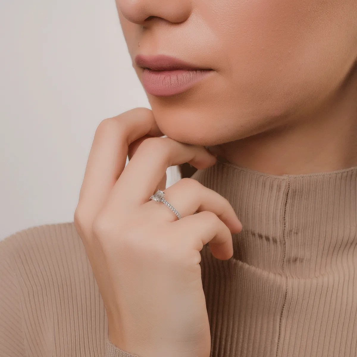 Metalul nobil al platinei adaugă un rafinament aparte, simbolizând durabilitatea sentimentelor. O piesă unică, ce transformă emoțiile în amintiri de neuitat.