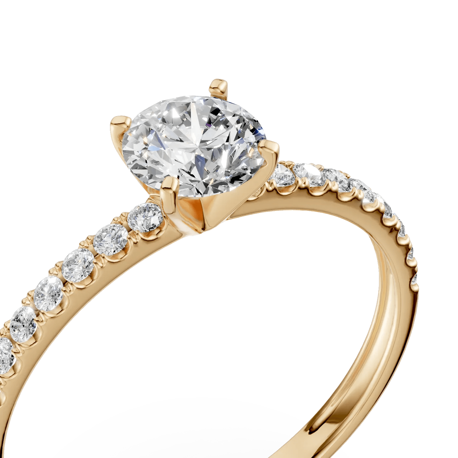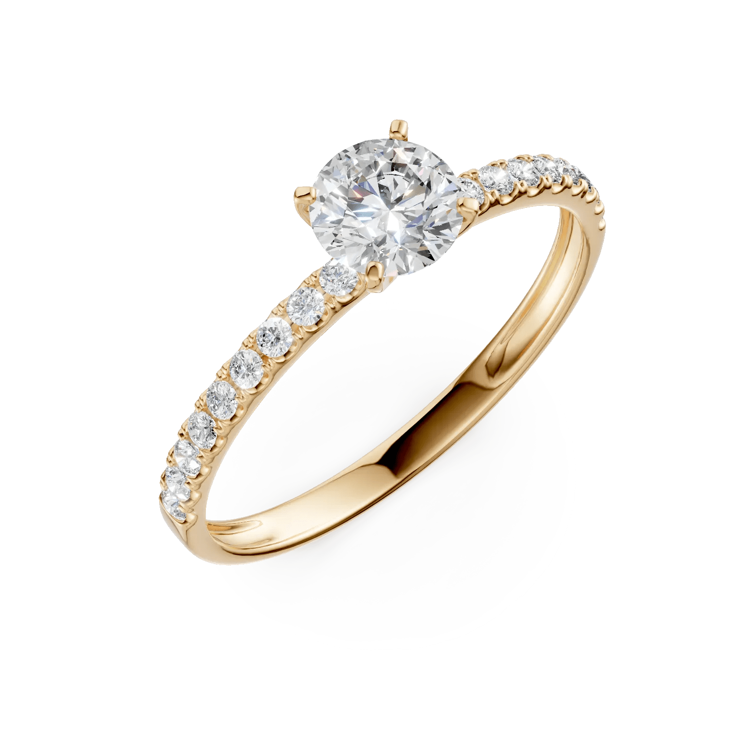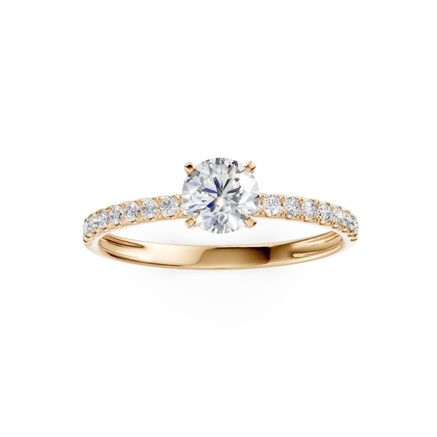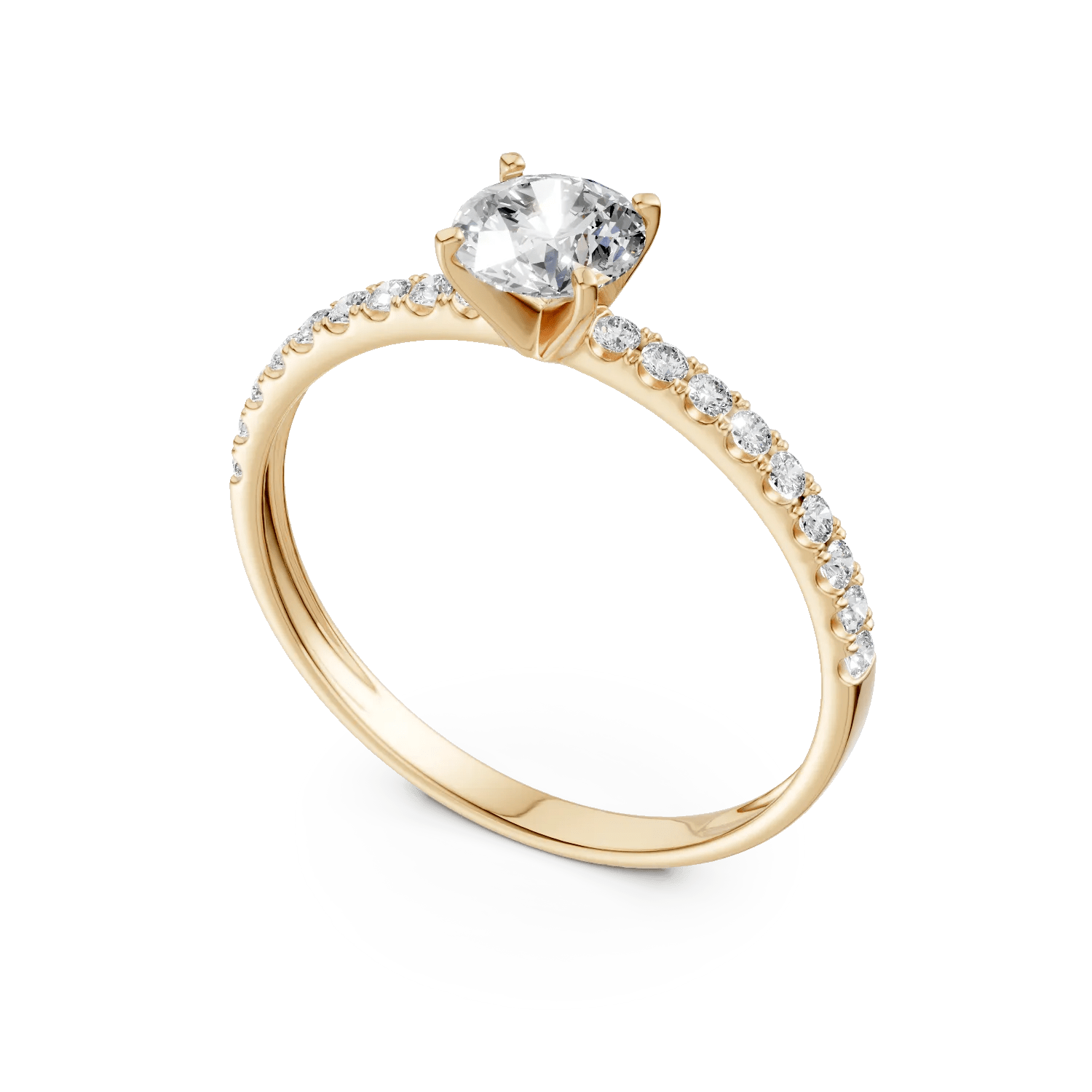 Acest inel de logodnă din colecția Love Stories combină tradiția cu eleganța modernă. Designul clasic și liniile fine evidențiază frumusețea solitaire pave din aur galben și zirconia centrală, creând un simbol al emoției împărtășite.