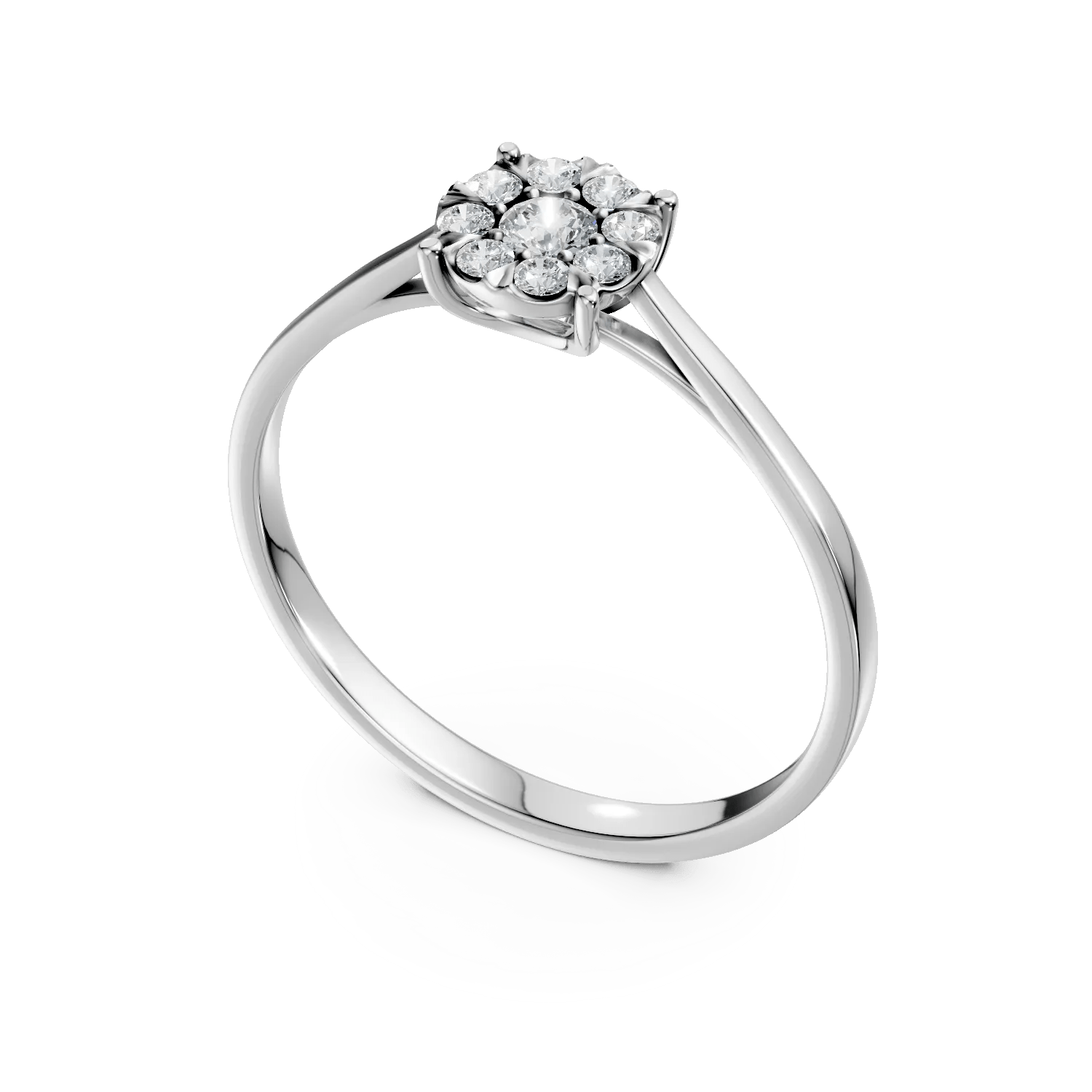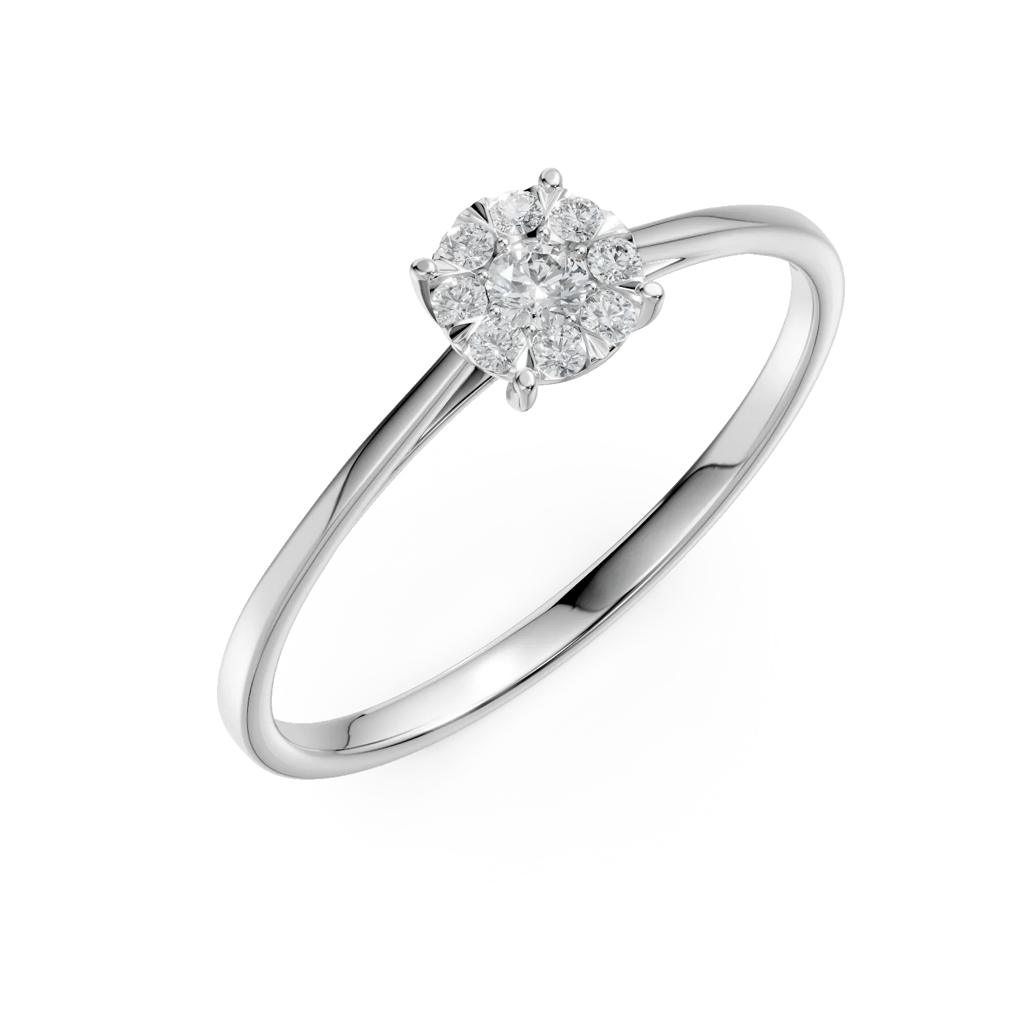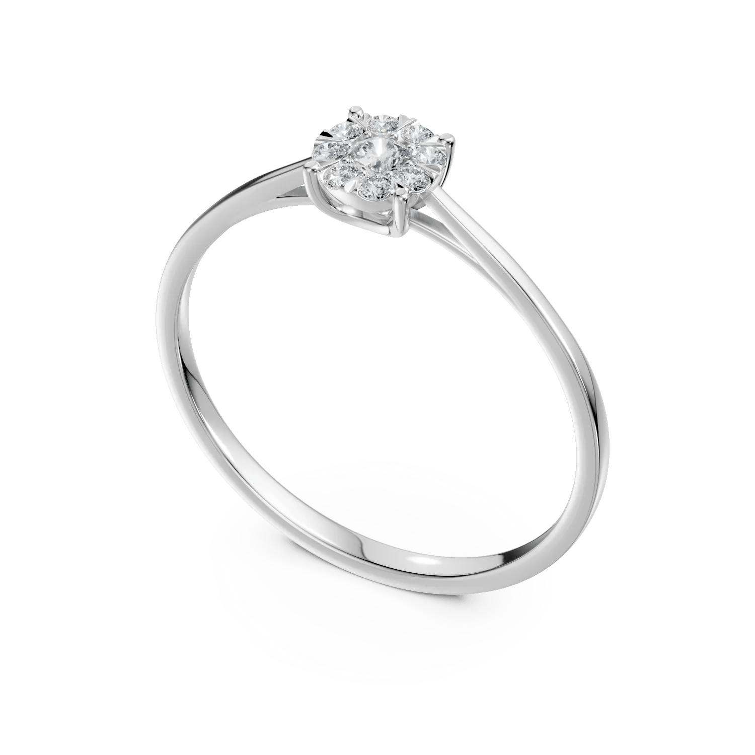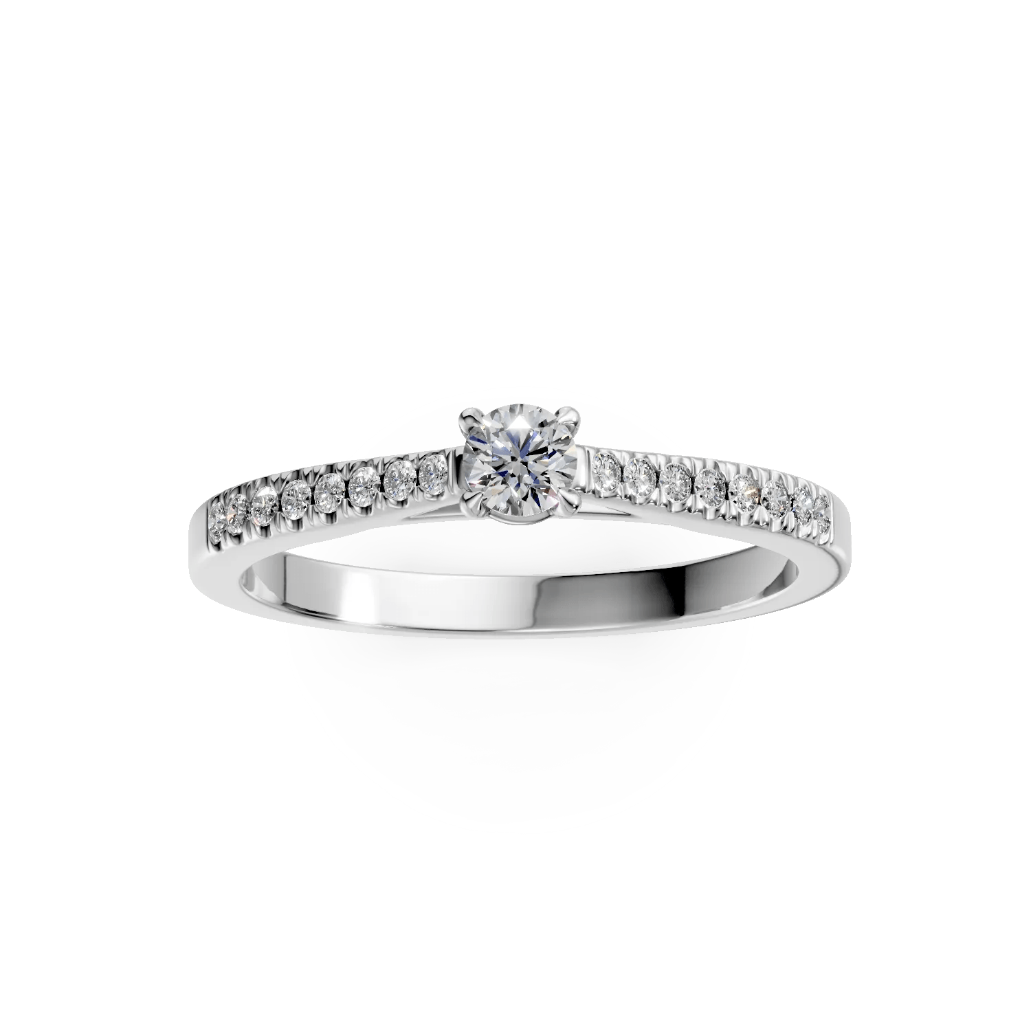 Inelul din aur alb cu diamante de 0.2ct, parte din colecția Love Stories, aduce o eleganță modernă și rafinată. Designul său fin este creat pentru a se asorta perfect cu orice model de verighetă.