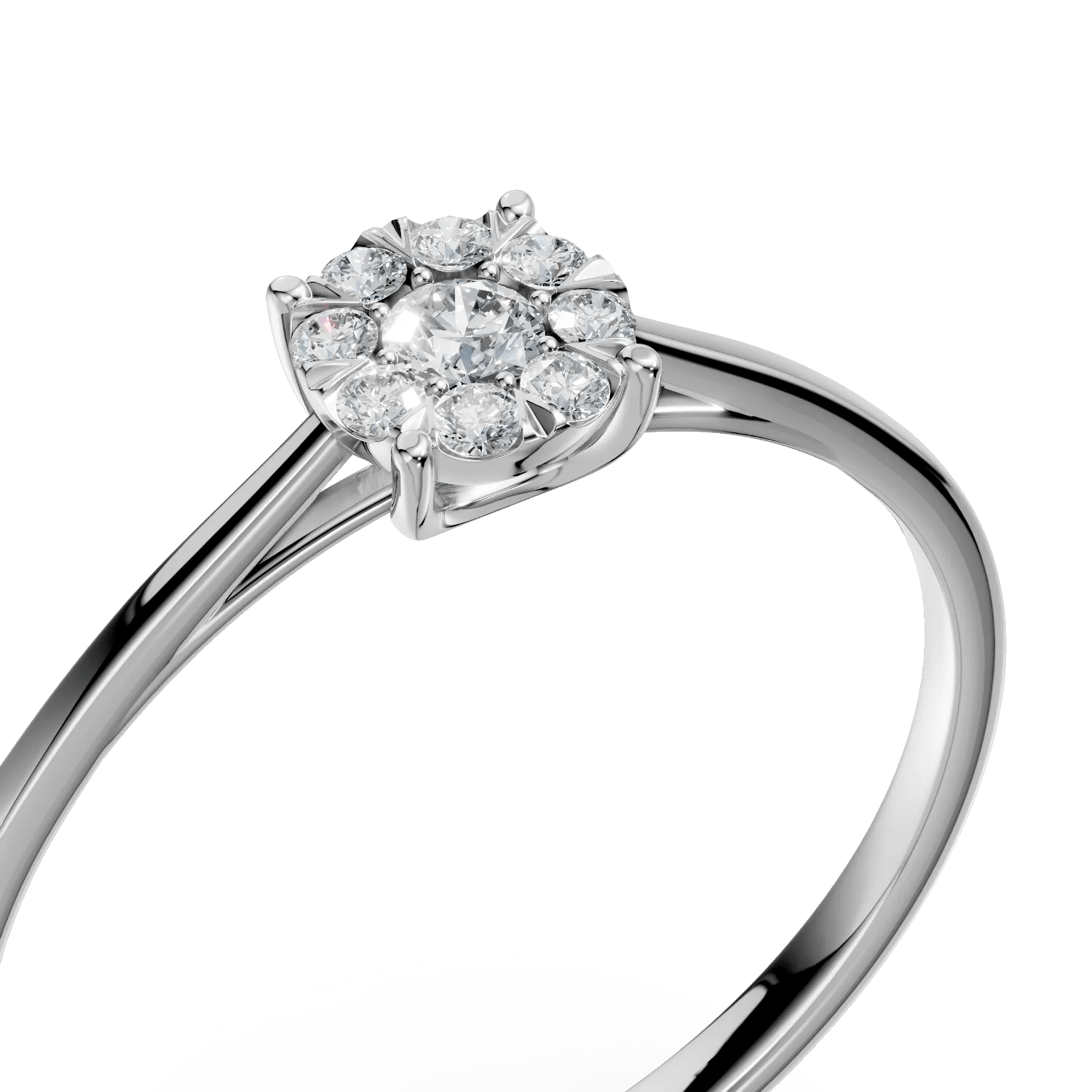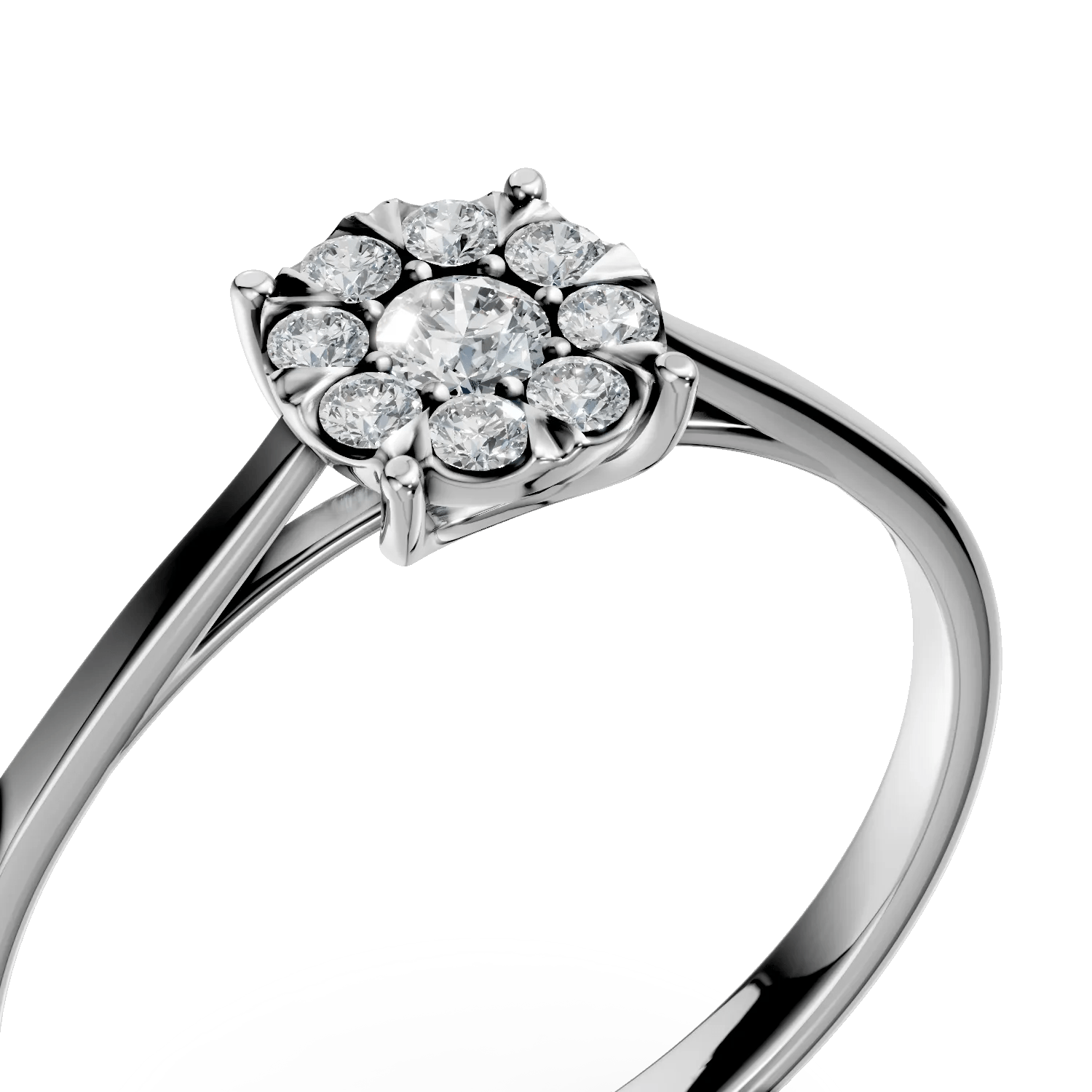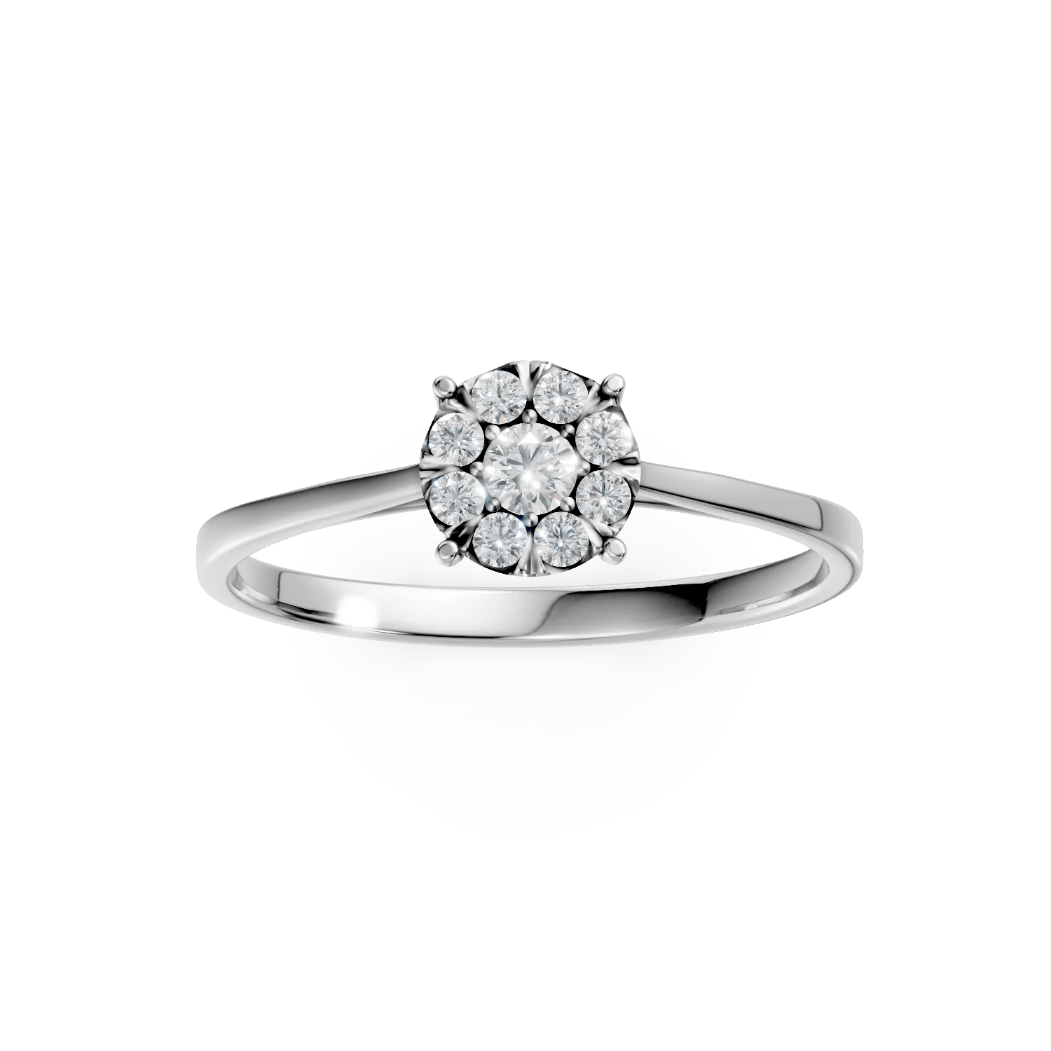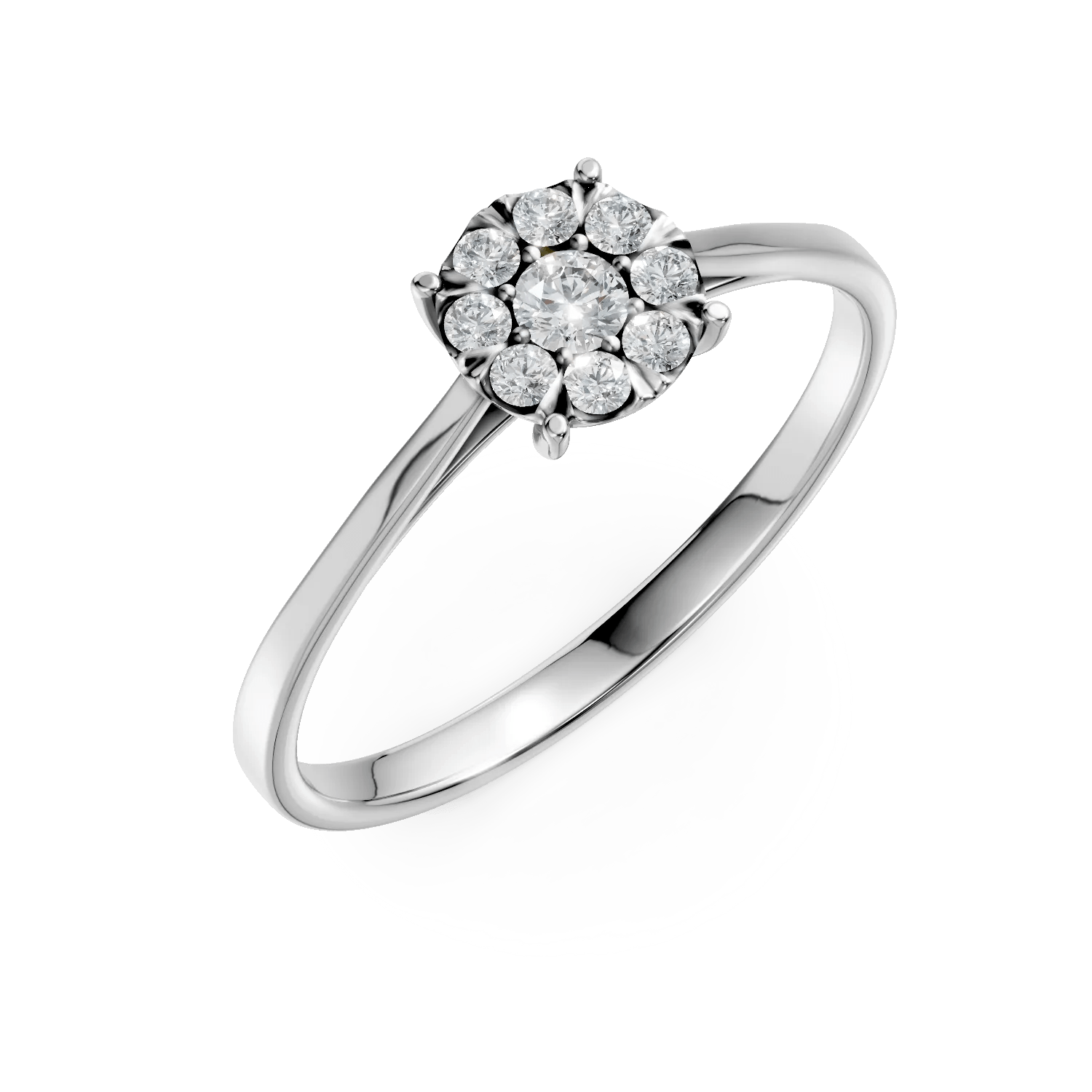Inelul din aur alb cu diamante de 0.2ct, parte din colecția Love Stories, aduce o eleganță modernă și rafinată. Designul său fin este creat pentru a se asorta perfect cu orice model de verighetă.