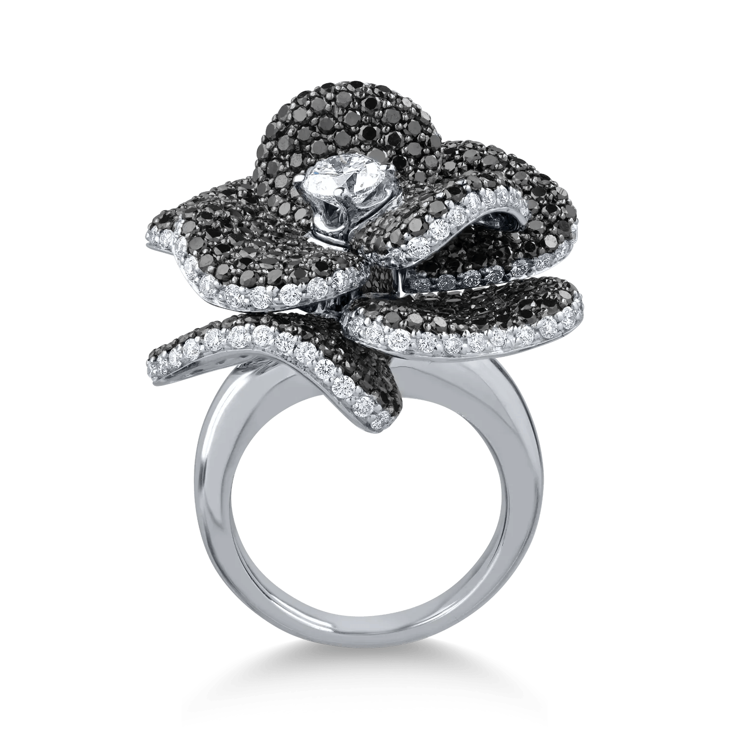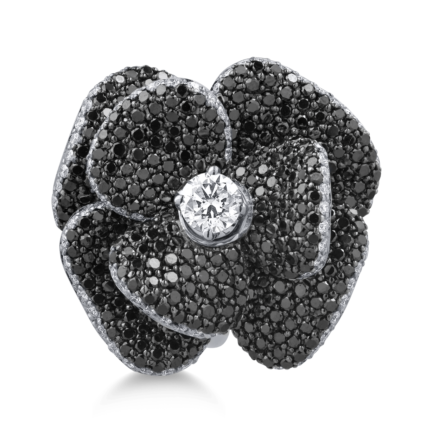 Inelul din aur alb împodobit cu diamante negre de 4.83ct și diamante transparente de 2.04ct reprezintă un design modern și rafinat. Lasă-te cucerit de eleganța acestui accesoriu semnat TEILOR.