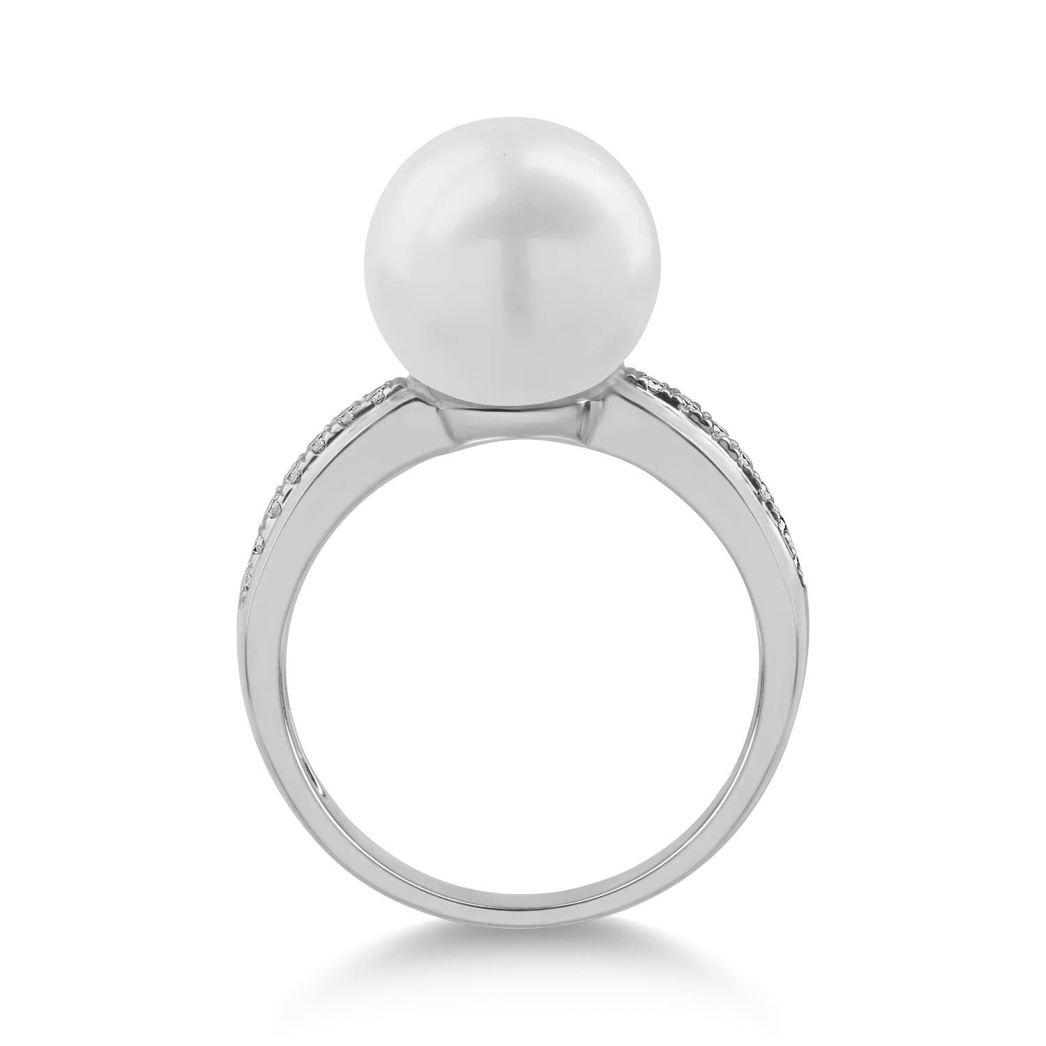 Inelul din aur alb, înfrumusețat cu o perlă de cultură de 7.5ct și diamante de 0.11ct, adaugă o notă de feminitate și strălucire. Designul său original îți completează stilul și îți pune în evidență personalitatea unică.