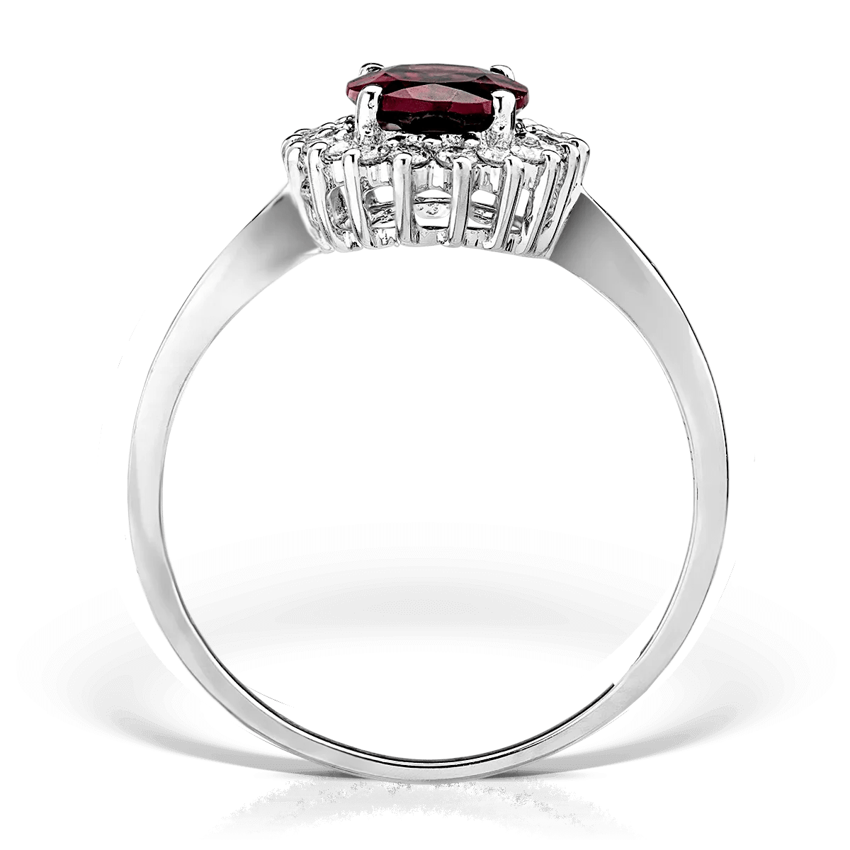 Exprimați-vă stilul cu acest inel elegant din aur alb, având un rodolit cu tăietură ovală de 1.2ct și diamante de 0.2ct. Designul său armonios combină pasiunea și rafinamentul, evidențiind nuanța profundă a pietrei principale.