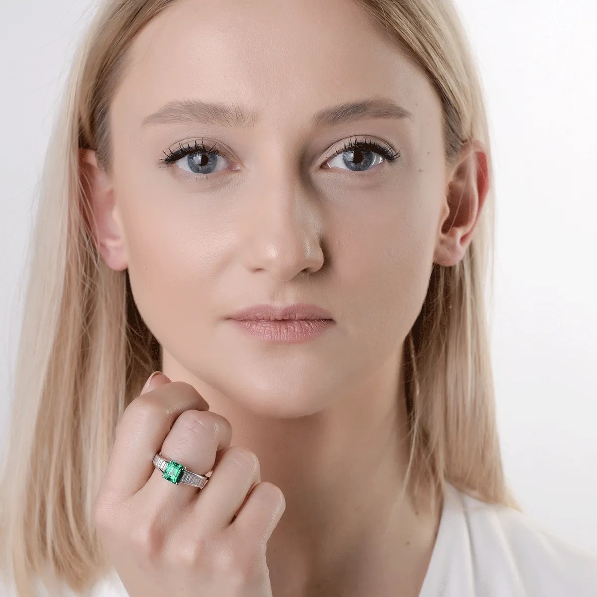 Feminitate și eleganță. Acest inel din aur alb cu smarald de 2.1ct și diamante de 2.4ct este creat din pasiune pentru accesoriile care îți aduc un sentiment deosebit. Împrumută-i fiecarei zile o frumusețe unică cu TEILOR.