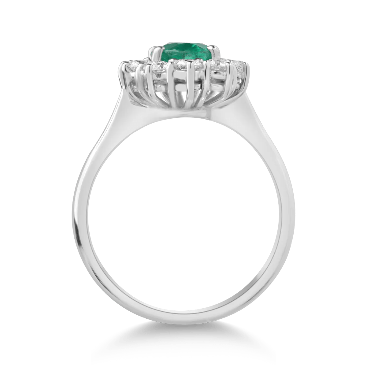 Acest inel din aur alb combină eleganța clasică cu un design modern. Dispune de un smarald cu tăietură ovală de 1.09ct, evidențiind intensitatea nuanțelor verzi, și diamante de 0.5ct care adaugă o strălucire discretă. O bijuterie ce îmbină rafinamentul tradițional cu stilul contemporan, povestind despre echilibru și sofisticare.