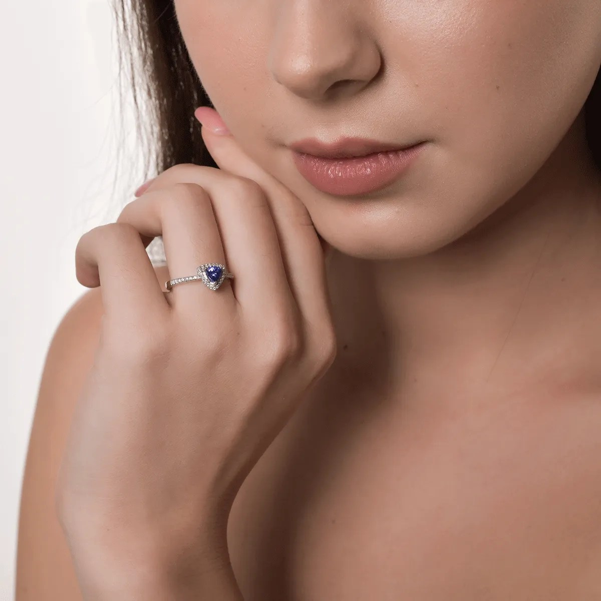 Inelul din aur alb, înfrumusețat cu un tanzanit de 0.52ct și diamante de 0.15ct, îmbină eleganța și sofisticarea. Parte din colecțiile TEILOR, această piesă reflectă atât simplitatea, cât și complexitatea stilului clasic și contemporan.