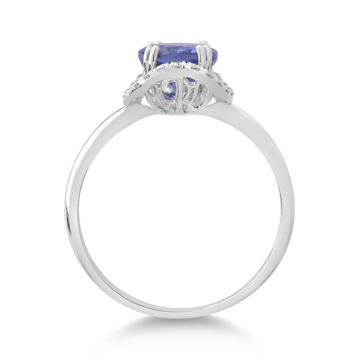 Descoperă eleganța unui inel unic, realizat din aur alb, cu un tanzanit oval de 2.2ct și diamante rafinate de 0.2ct. Acest design modern și echilibrat reflectă feminitatea contemporană prin nuanța bogată de albastru-violet și strălucirea subtilă a diamantelor.